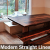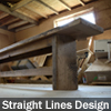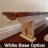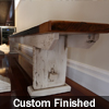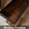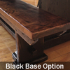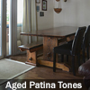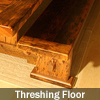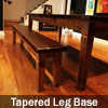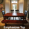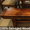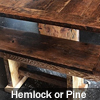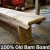 The 2 inch tops are made from reclaimed barn floor boards, also called threshing floor boards. The perpendicular bread edge boards on the ends ensure authentically distressed barn board edges on all sides. Any hand-hewn beams come from the structure of an old barn. Legs are made from original barn wind brace beams, which support the large, structural beams in a pioneer barn. All 1" thick material we use is from an old barn's interior grainery room, also called grainery boards.