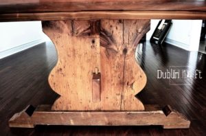 14 Foot Ontario Barnwood Boardroom Table – 56″ wide – Trestle style Base – Reclaimed Pine Threshing Floor – Premium exterior grade epoxy/satin polyurethane finish – Violin shaped base – Posted by Gerald Reinink, Design & Sales