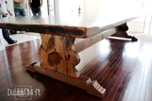 14 Foot Ontario Barnwood Boardroom Table – 56″ wide – Trestle style Base – Reclaimed Pine Threshing Floor – Premium exterior grade epoxy/satin polyurethane finish – Violin shaped base – Posted by Gerald Reinink, Design & Sales