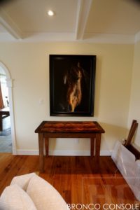 Description: 48″ Reclaimed Wood Console Sideboard Table – 24″ deep – Tapered Windbrace Beam Legs – 34″ height [to accommodate painting] – Reclaimed Hemlock 2″ Threshing Floor Top – 1″ Grainery Board Skirting – Original barn floor live edges