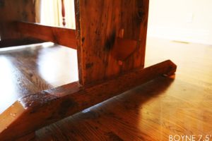 Details: 7.5 ft Reclaimed Wood Table – Trestle Style Base – 42″ wide- Reclaimed Hemlock Threshing Floor Construction – Premium epoxy/polyurethane finish – Original barnwood edges maintained