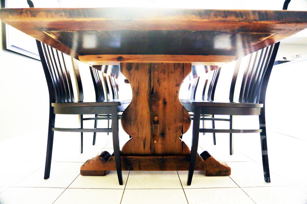 For a more formal version of our trestle style base; consider the violin shaped profile [rather than the popular straight lines version]. Check out this reclaimed wood table set we recently made: