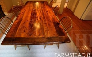 Description: 9 ft Trestle Table – 3.5 ft Wide – Solid Reclaimed Hemlock Threshing Floor Construction – Premium epoxy/polyurethane finish – Original barnwood edges maintained – 3.5 ft [matching] Trestle BenchÂ
