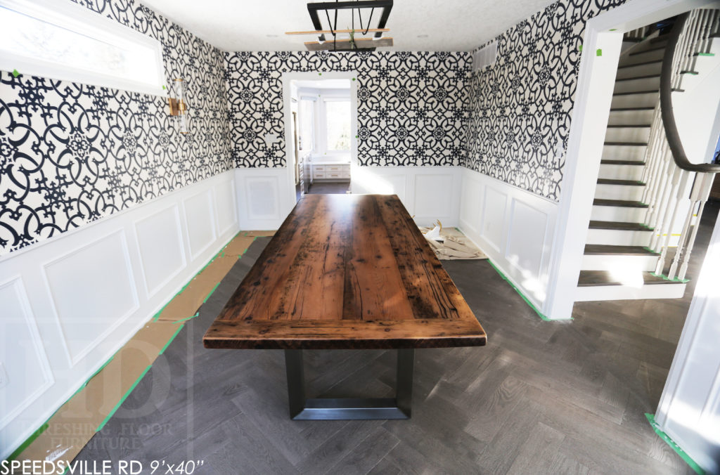 9’x40″ Boardroom Table Made from Ontario Barnwood for Cambridge, Ontario Company