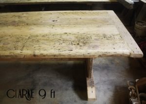 Description: 9 ft Rustic Trestle Table – 48″ wide – Reclaimed Pine Threshing Floor Construction – Premium epoxy resin + polyurethane finish – Black Stain Base – Original Barnwood Distressing MaintainedÂÂ