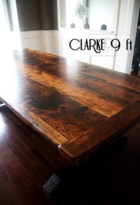 Description: 9 ft Rustic Trestle Table – 48″ wide – Reclaimed Pine Threshing Floor Construction – Premium epoxy resin + polyurethane finish – Black Stain Base – Original Barnwood Distressing MaintainedÂÂ