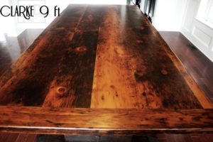 Description: 9 ft Rustic Trestle Table – 48″ wide – Reclaimed Pine Threshing Floor Construction – Premium epoxy resin + polyurethane finish – Black Stain Base – Original Barnwood Distressing MaintainedÂÂ