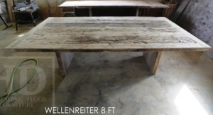 Specifics: 8 ft Plank [3″ Reclaimed Joist Material Posts] – 48″ wide – Reclaimed Barnwood Hemlock 2″ Solid Wood Top – Premium epoxy on top – High Gloss Polyurethane Topcoat – Original barn floor board live edges – Gerald Reinink