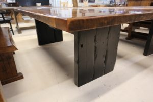 96†Boardroom Table – 48†wide – Round centre hole to accommodate phone console – Modern Plank Base – Solid Black Base – Reclaimed Barnwood Hemlock Threshing Floor Construction – Premium epoxy/satin polyurethane finish – Price $3305+hst