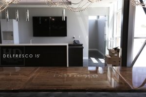 Details: 15 ft Boardroom Table – 48″ wide – 3″ Plank Joists Base with Centre Cavity – Reclaimed Hemlock Barnwood Construction – 2″ Top with Original Barnwood Edges Maintained – Custom Logo Embedded – Greytone Treatment to Preserve Tones of Unfinished – Premium epoxy/high gloss polyurethane finish – Dry On-Site Final Doweling [delivered in three 5′ sections]