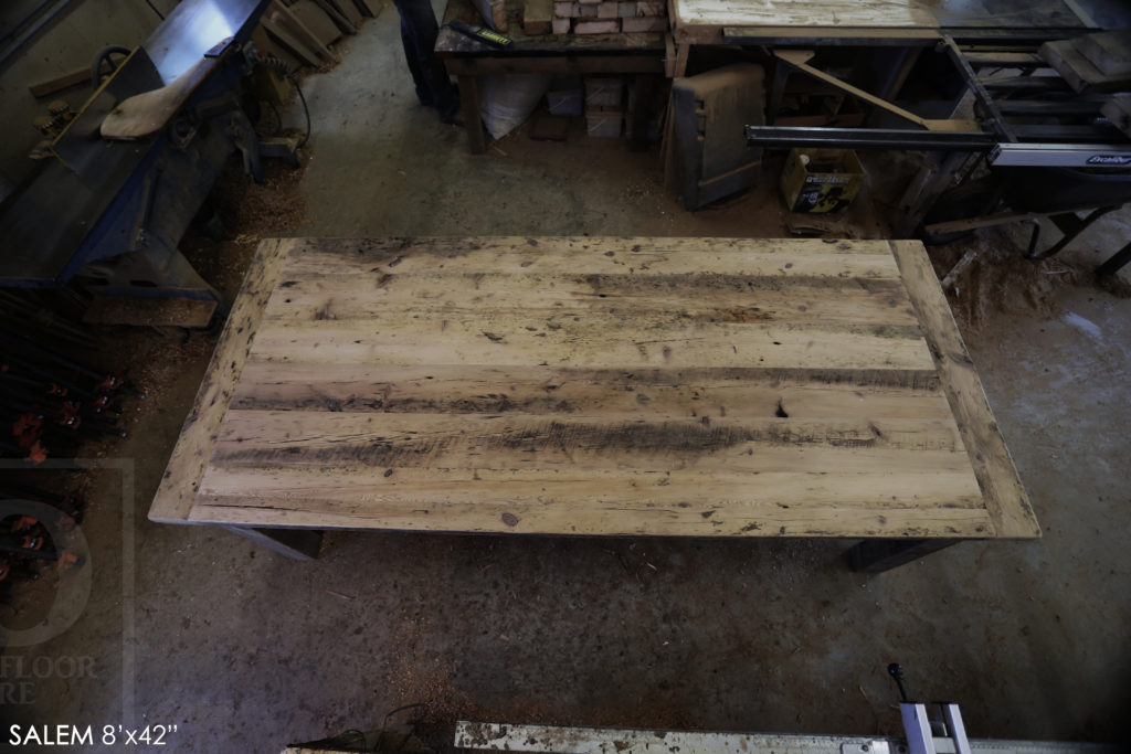 Custom 8’x42″ Reclaimed Wood Harvest Table with Straight Legs for Salem Home