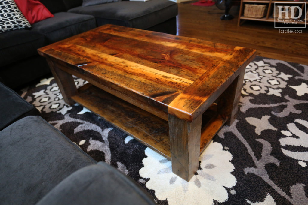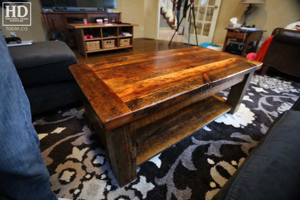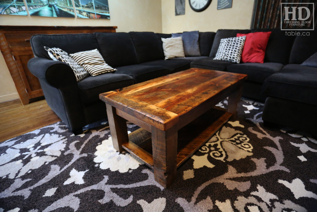 Custom Distressed Wood Coffee Table made from Ontario Barnwood