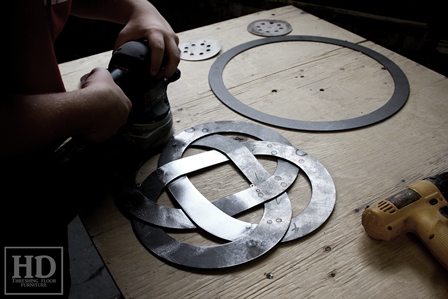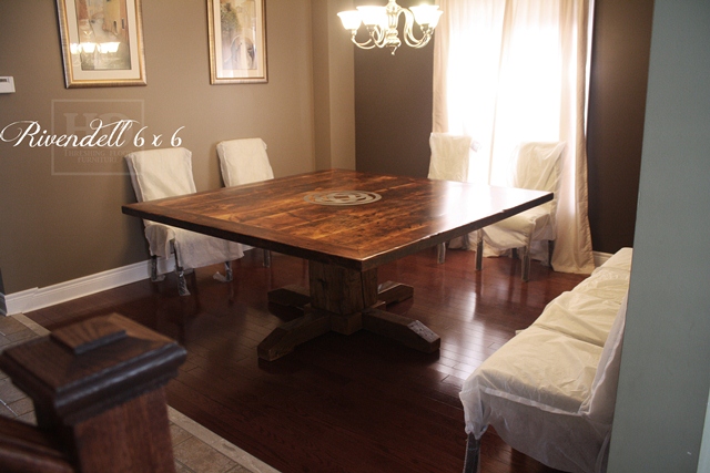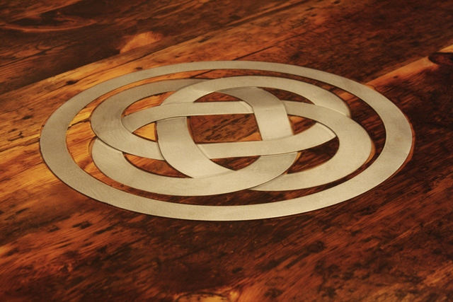 See pictures of a really unique celtic knot graphic we embedded in a 6 ft x 6 ft Pedestal Table – Reclaimed, Old-growth Pine – Hand Hewn Beam Base – for a customer in Toronto.