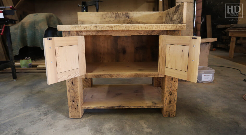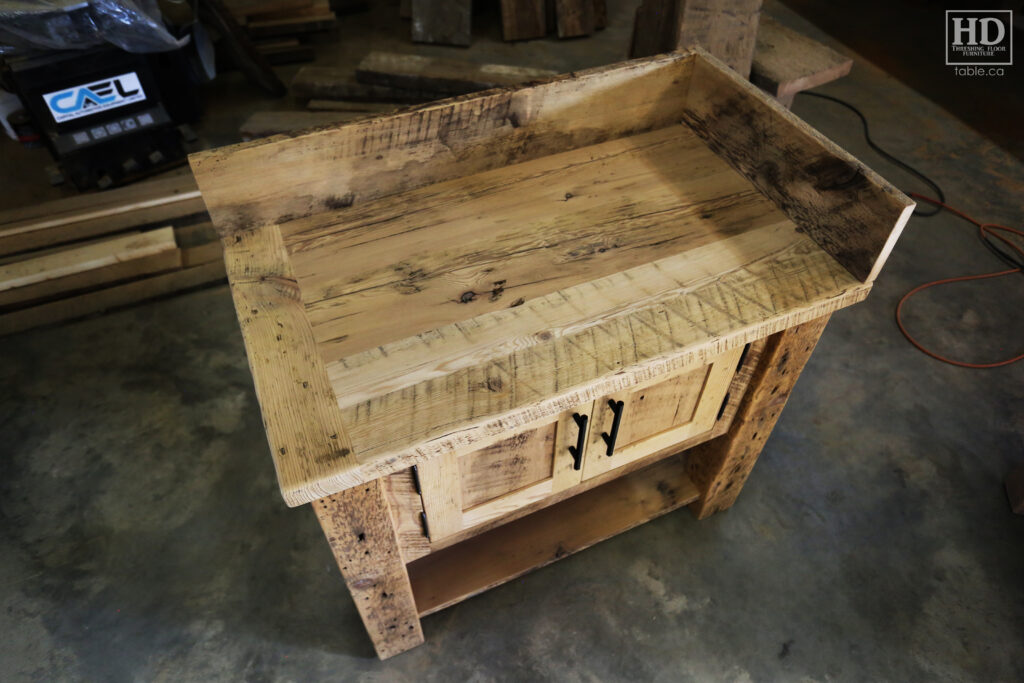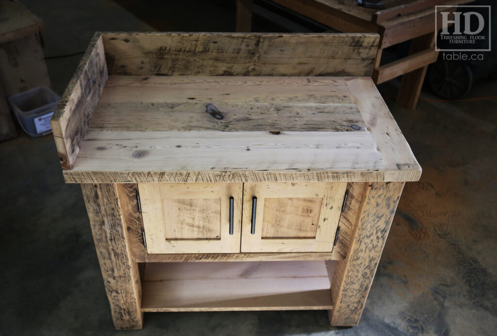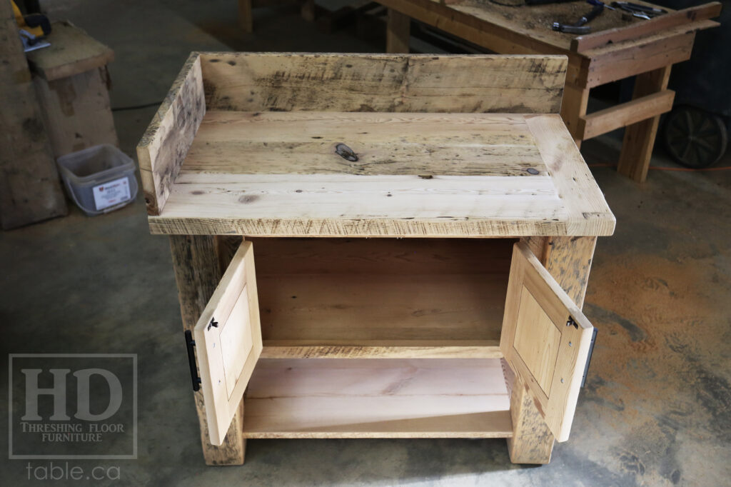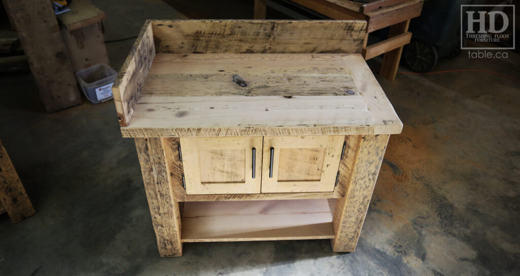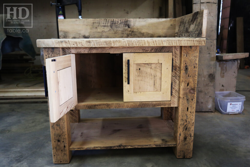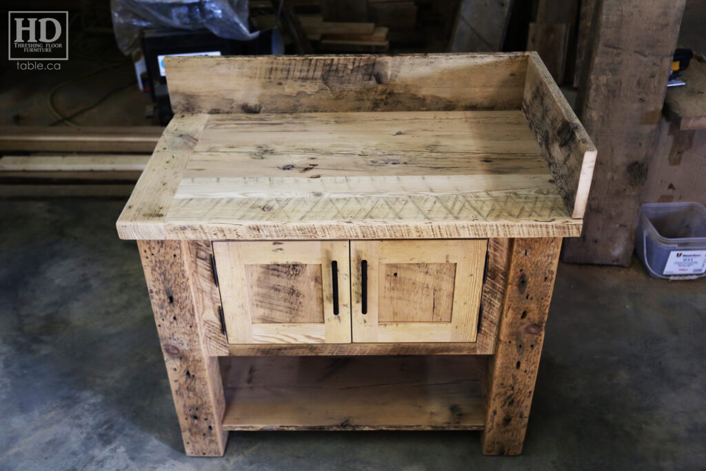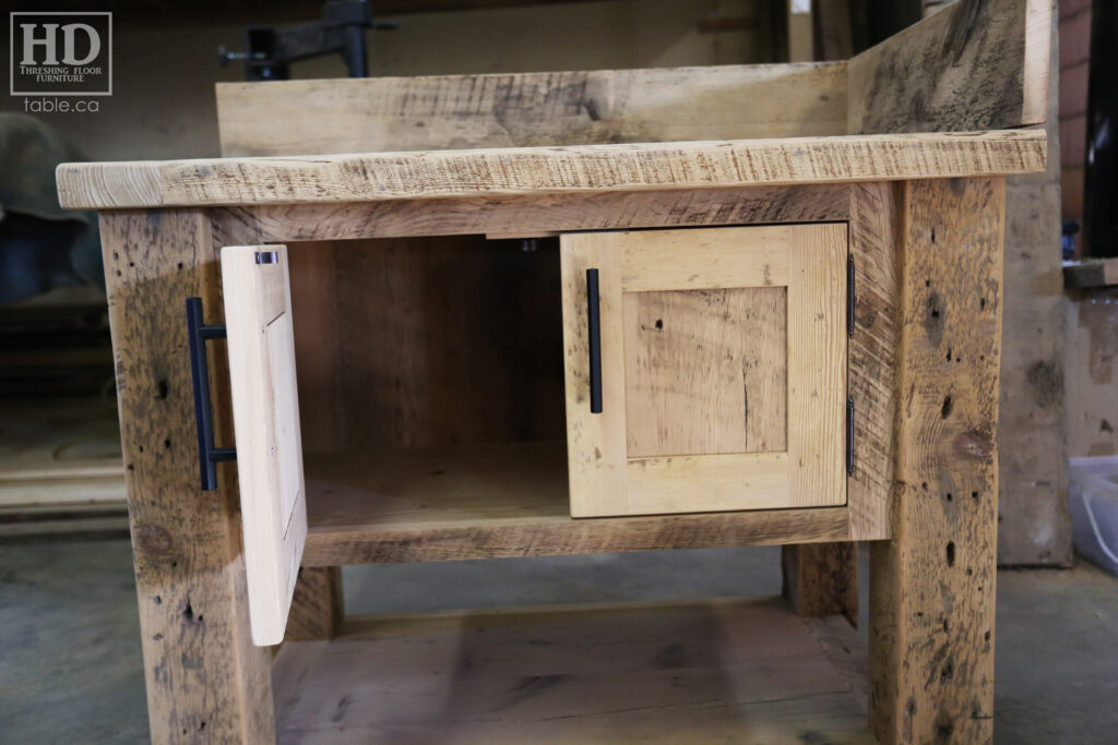 ![[2] 38" Ontario Barnwood Vanities - 22" deep - 31" height - 6" height backsplash - 2 Doors - Bottom 1" Shelf - 4"x4" Windbrace Beam Corners - Lee Valley Hardware - Lee Valley Hardware - Old Growth Reclaimed Hemlock Threshing Floor & Grainery Board Construction - Original eges & distressing maintained - Unfinished - www.table.ca](https://www.hdthreshing.dreamhosters.com/blog/blog/wp-content/uploads/2024/03/1B9A0623-1024x683.jpg)