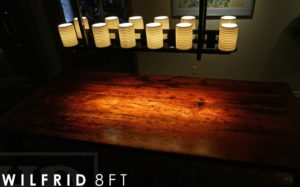 Description: 8 ft Kincardine Harvest Table – 42″ wide – Cabriole Legs – Reclaimed Hemlock Threshing Floor Construction – Premium epoxy/polyurethane finish – Original live barn floor board edges maintained