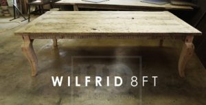 Description: 8 ft Kincardine Harvest Table – 42″ wide – Cabriole Legs – Reclaimed Hemlock Threshing Floor Construction – Premium epoxy/polyurethane finish – Original live barn floor board edges maintained
