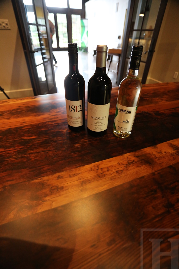 We’ve done quite a few tables for Ontario wineries. The warm, unstained, authentic distressing of our reclaimed wood tables – combined with our waterproof clear-coat finish – make our tables ideal for wine tasting and wet spaces. A lot of the value of wine aligns with the value of reclaimed wood. At the risk of sounding pretentious – aged wood pairs very well with aged wine. We had the pleasure of working for Palatine Hills in Niagara-on-the-Lake, Ontario (see pictures below).