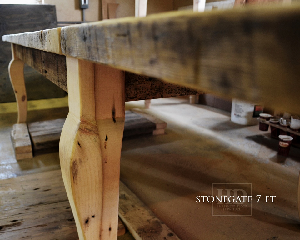 7 ft Niagara-on-the-Lake Reclaimed Wood Harvest Table with Cabriole Legs