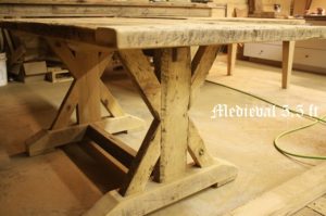 5′ 4″ Rustic Sawbuck Table in Oakville, Ontario – 36″ wide – Premium epoxy with polyurethane topcoat finish – Solid Wood – Reclaimed Barnwood Pine Threshing Floor Construction – 2″ thick top