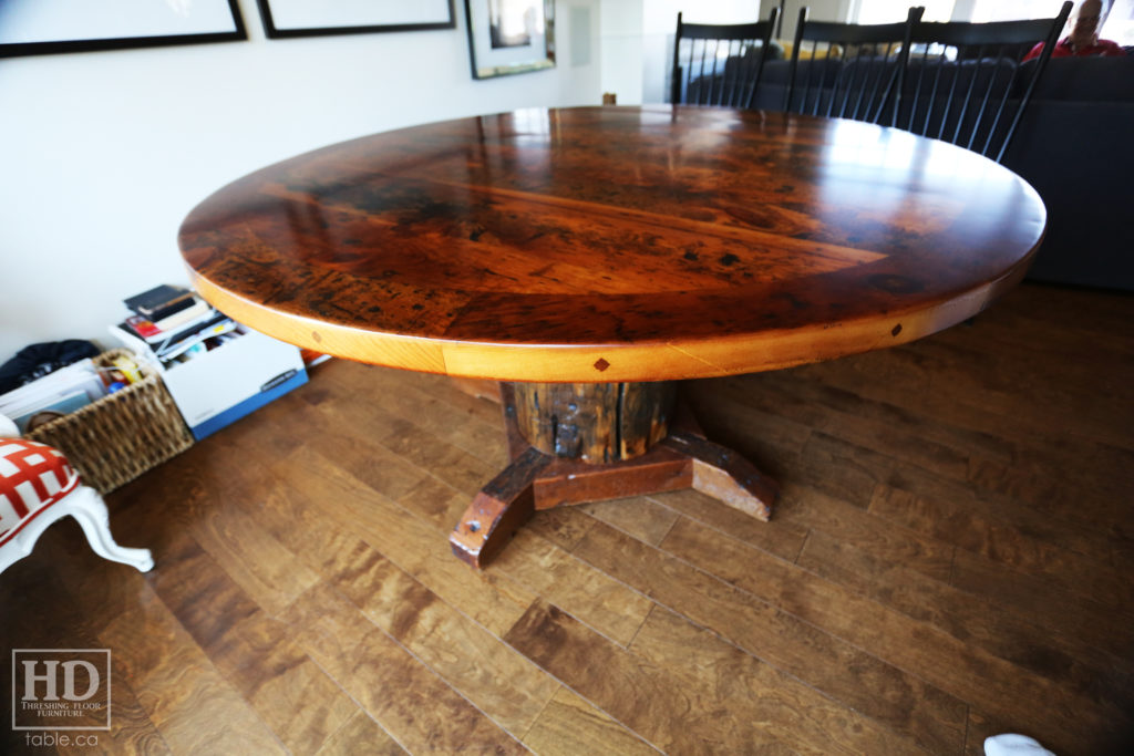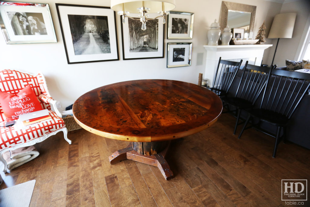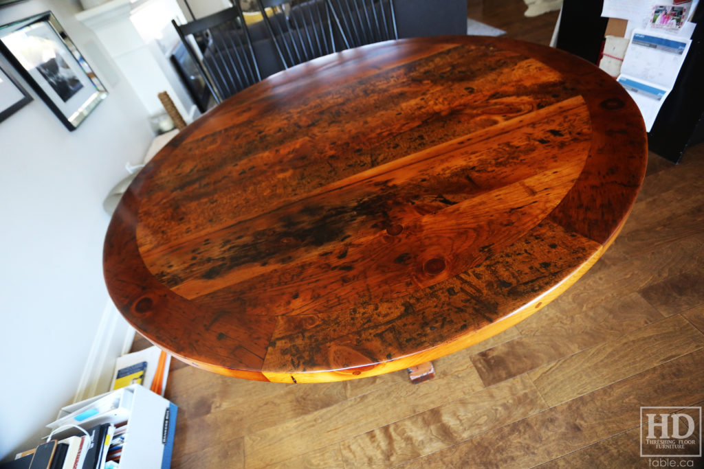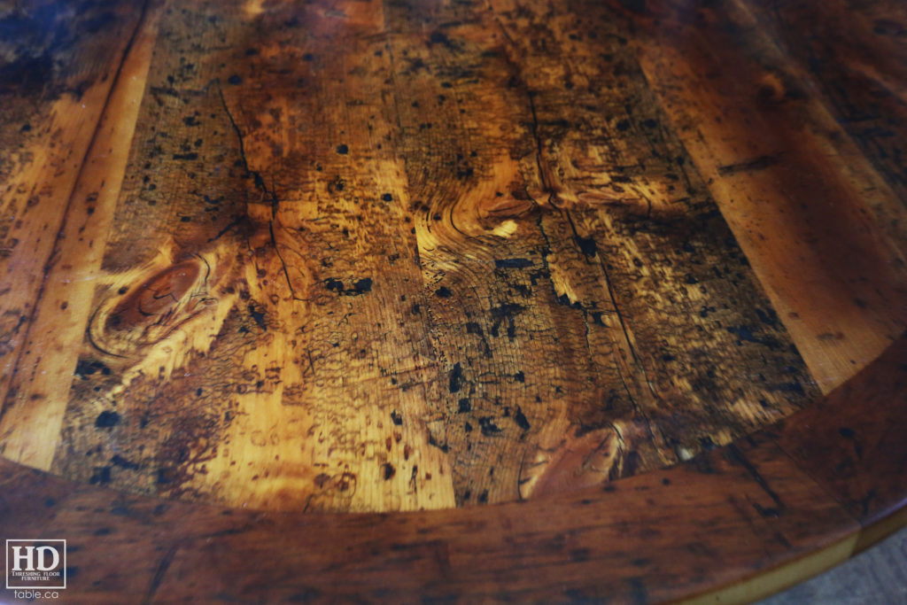 Old Growth Pine Round Table made from Ontario Barnwood
