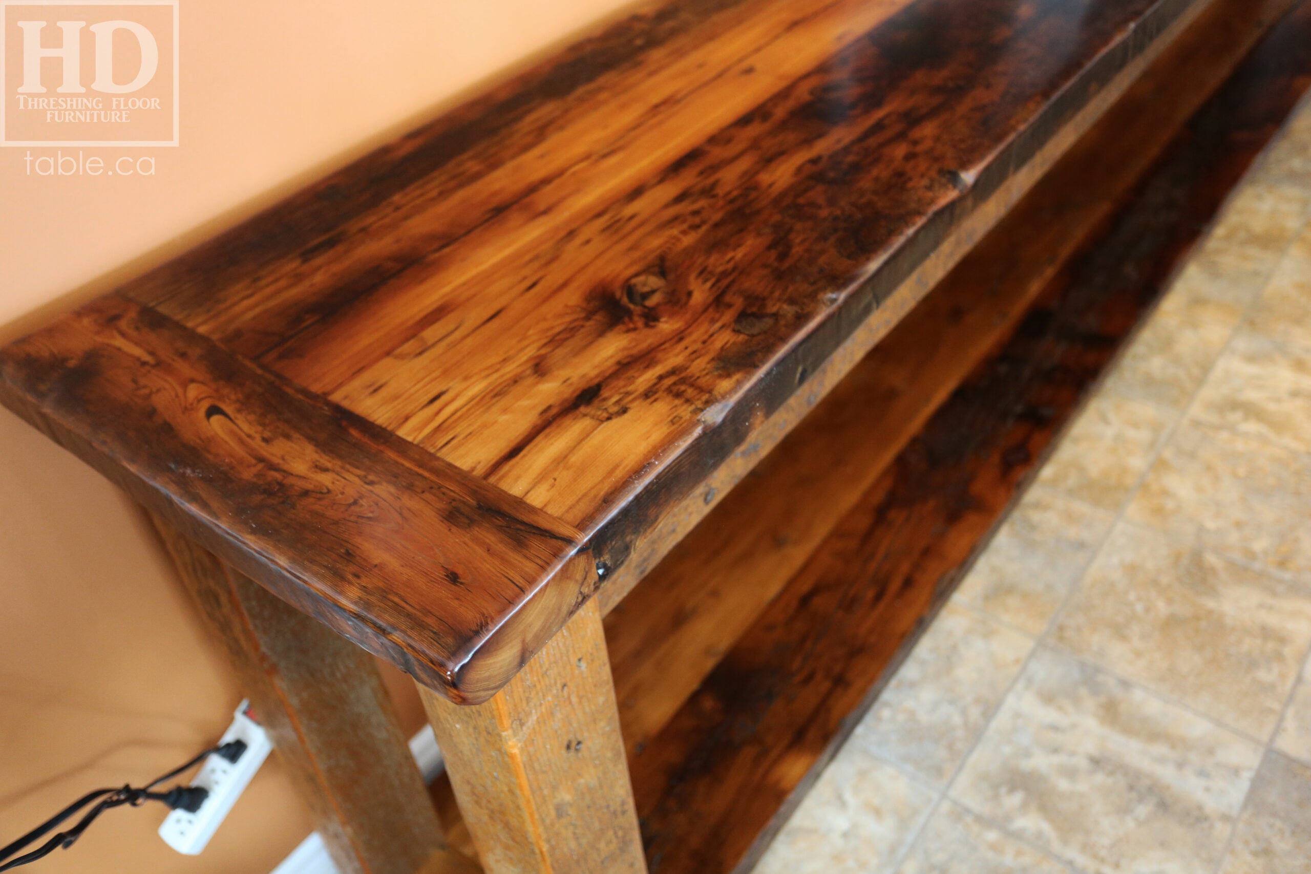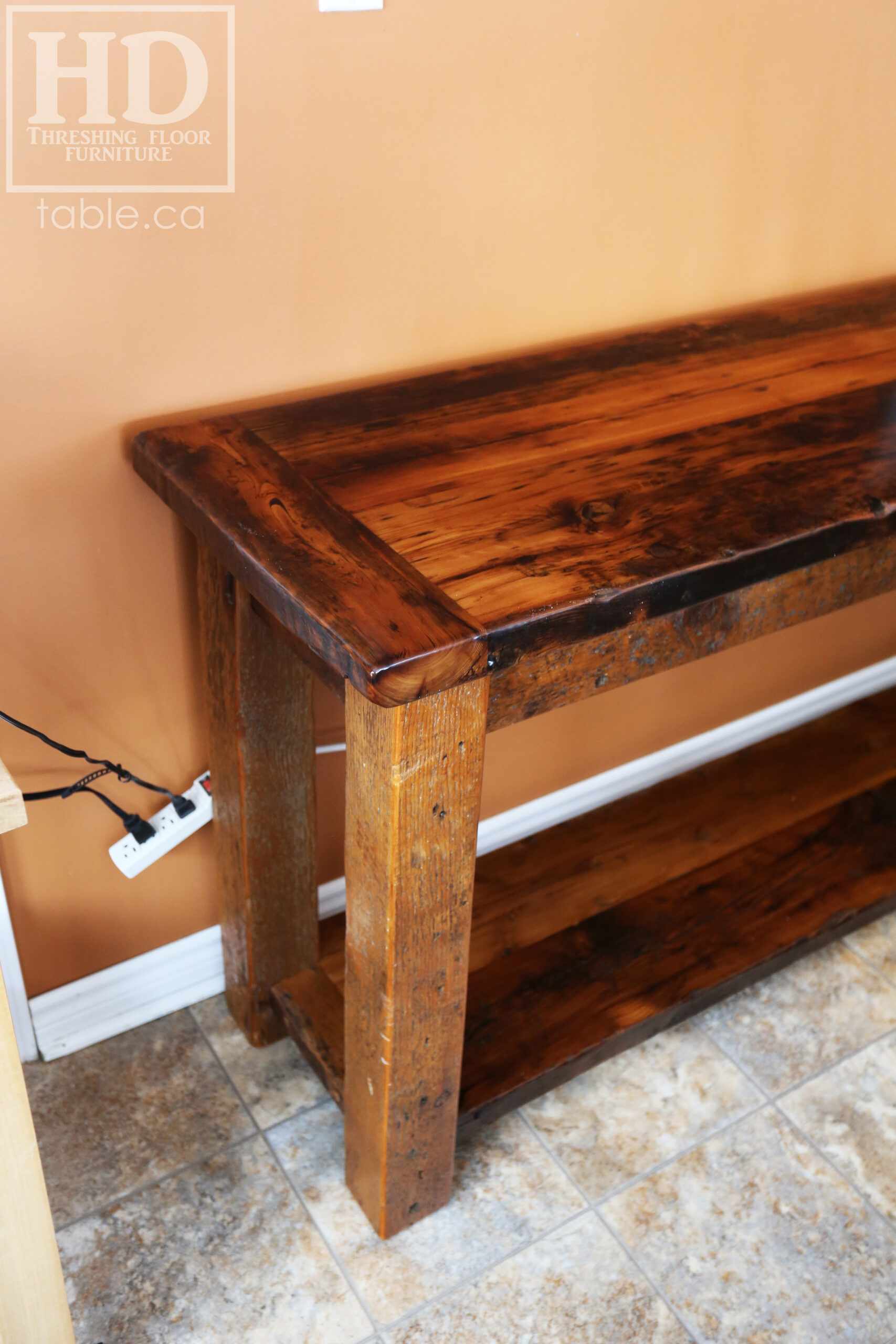 Tagged barnwood, console table, console table ontario, Gerald Reinink, HD Threshing, HD Threshing Floor Furniture, Hemlock, Ontario, reclaimed wood, reclaimed wood table, rustic, rustic console table, side table ontario