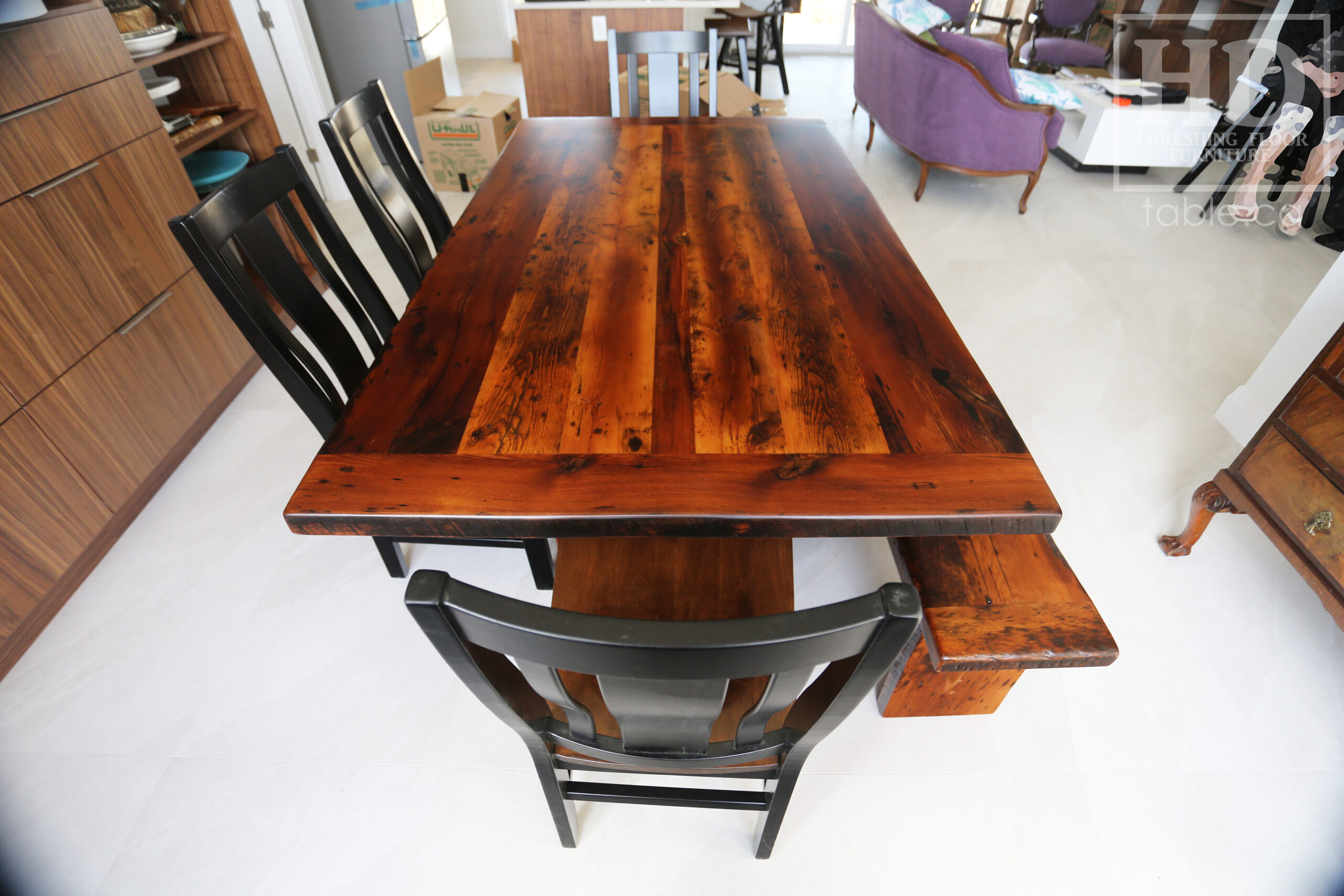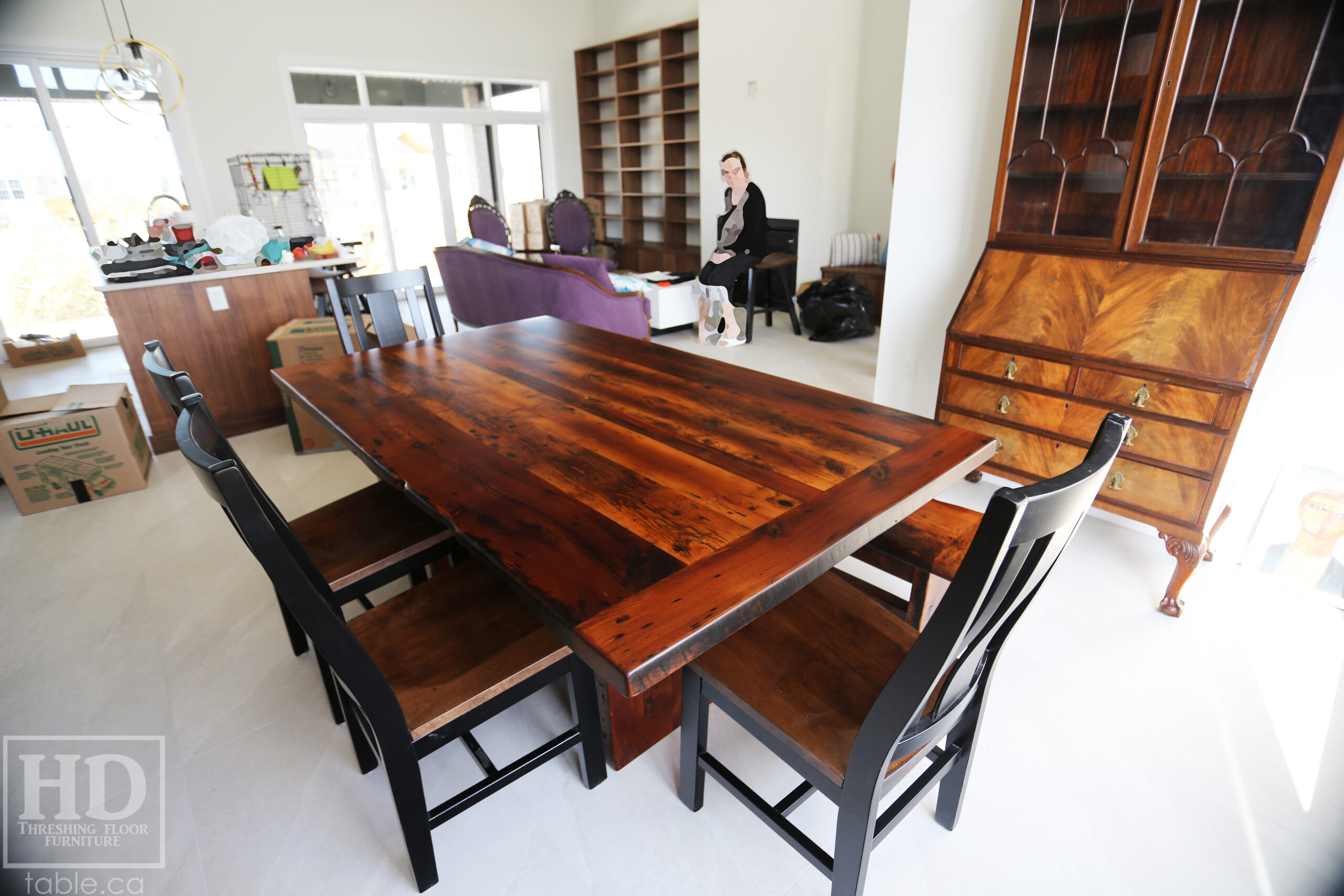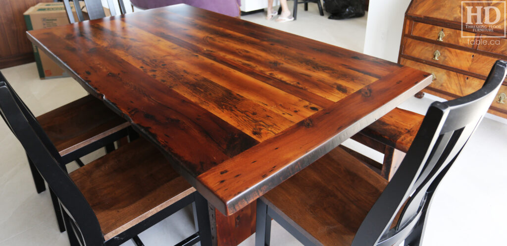 ![74" Reclaimed Ontario Barnwood Table - 48" wide - Plank Base Option - Old Growth Hemlock Threshing Floor Construction - Original edges & distressing maintained - Premium epoxy + matte polyurethane finish - 74" [matching] Plank Base Bench - 4 Modified Plank Back Chairs - 3 Saddle Stools - www.table.ca](https://www.hdthreshing.dreamhosters.com/blog/blog/wp-content/uploads/2023/01/rustic-reclaimed-wood-table-windsor-ontario-hd-threshing-13-scaled.jpg)