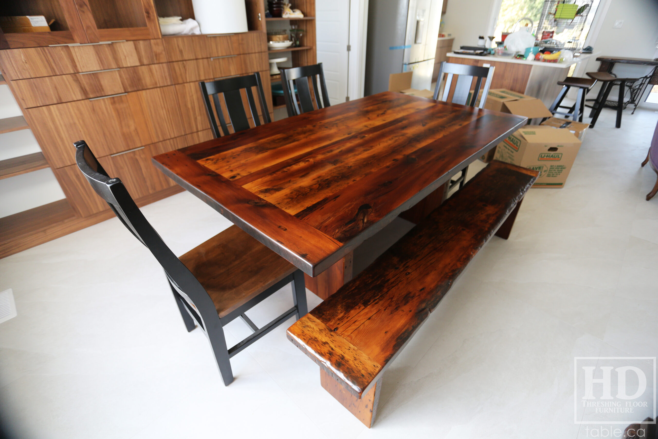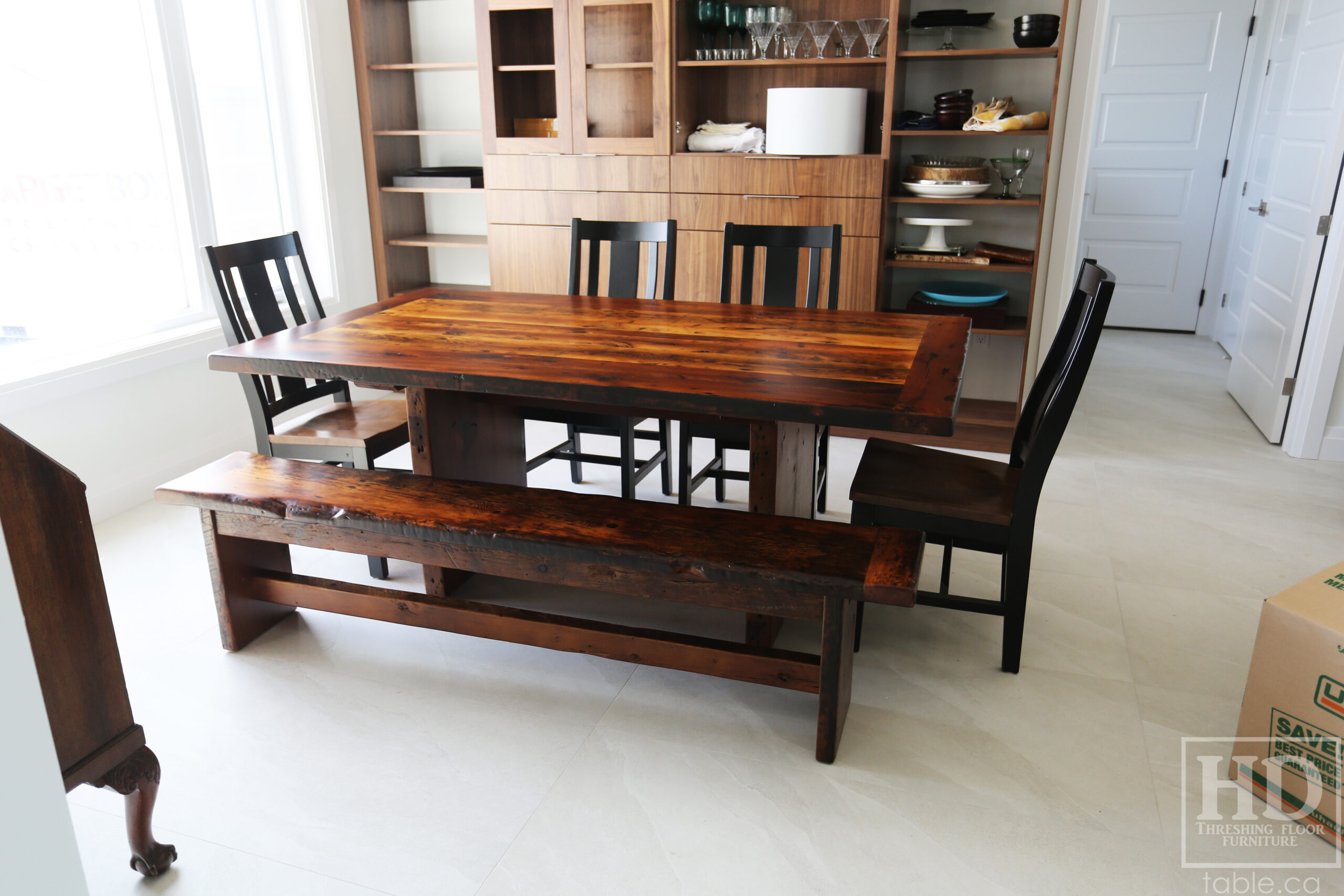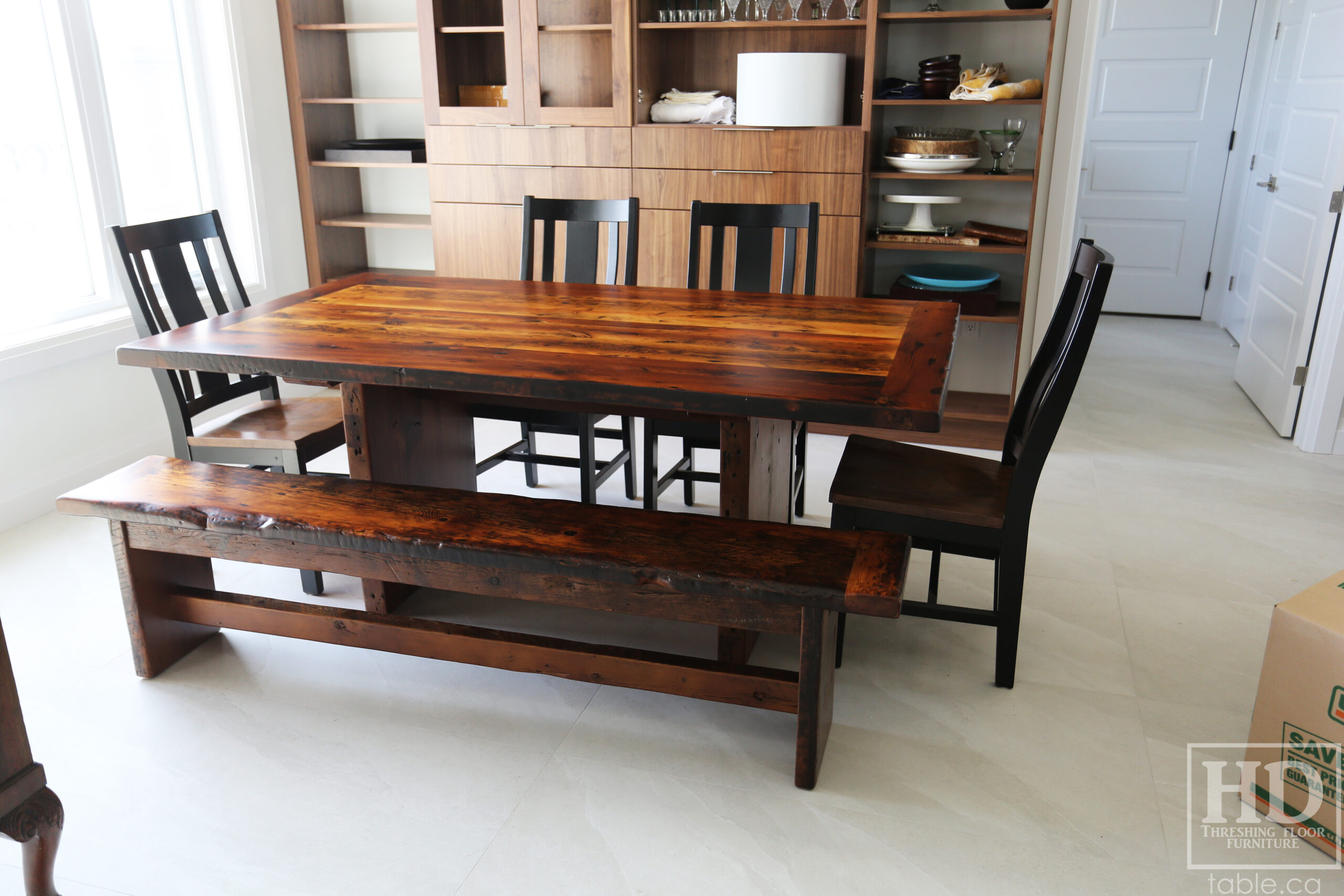 ![74" Reclaimed Ontario Barnwood Table - 48" wide - Plank Base Option - Old Growth Hemlock Threshing Floor Construction - Original edges & distressing maintained - Premium epoxy + matte polyurethane finish - 74" [matching] Plank Base Bench - 4 Modified Plank Back Chairs - 3 Saddle Stools - www.table.ca](https://www.hdthreshing.dreamhosters.com/blog/blog/wp-content/uploads/2023/01/rustic-reclaimed-wood-table-windsor-ontario-hd-threshing-17-scaled.jpg)