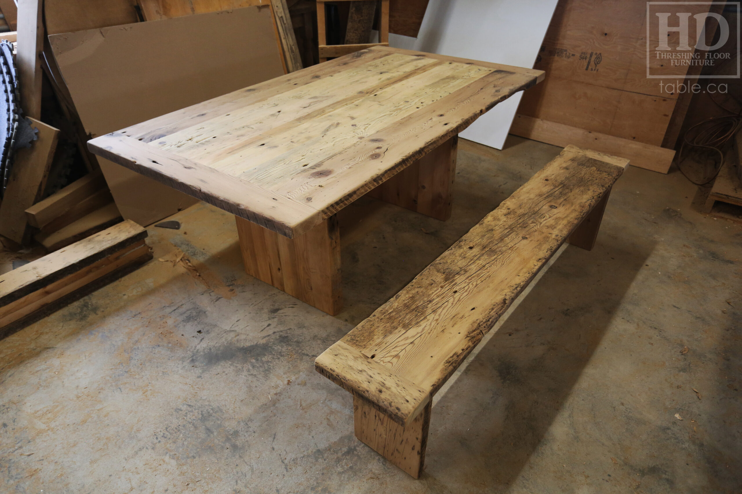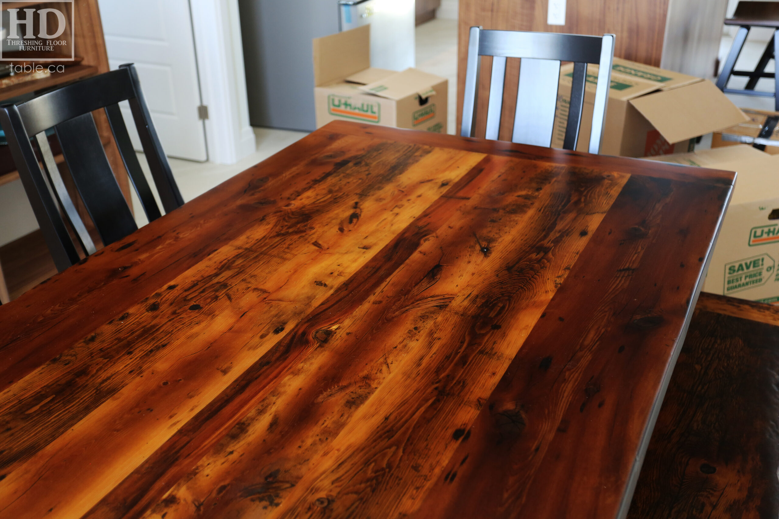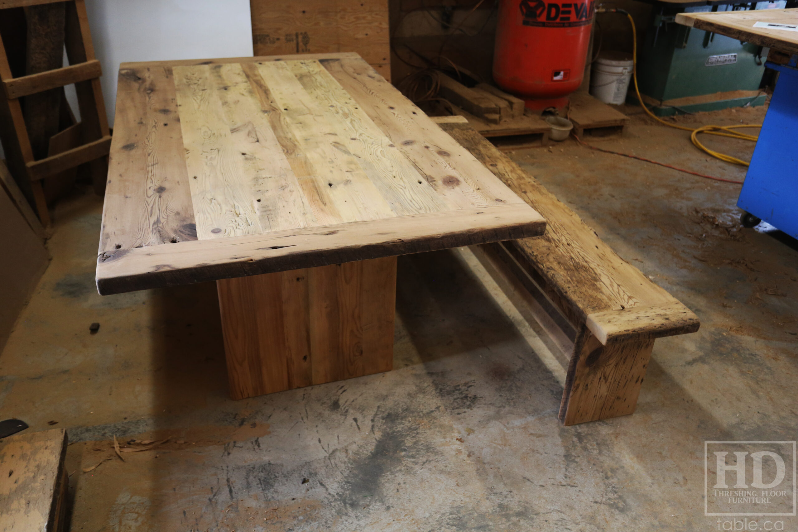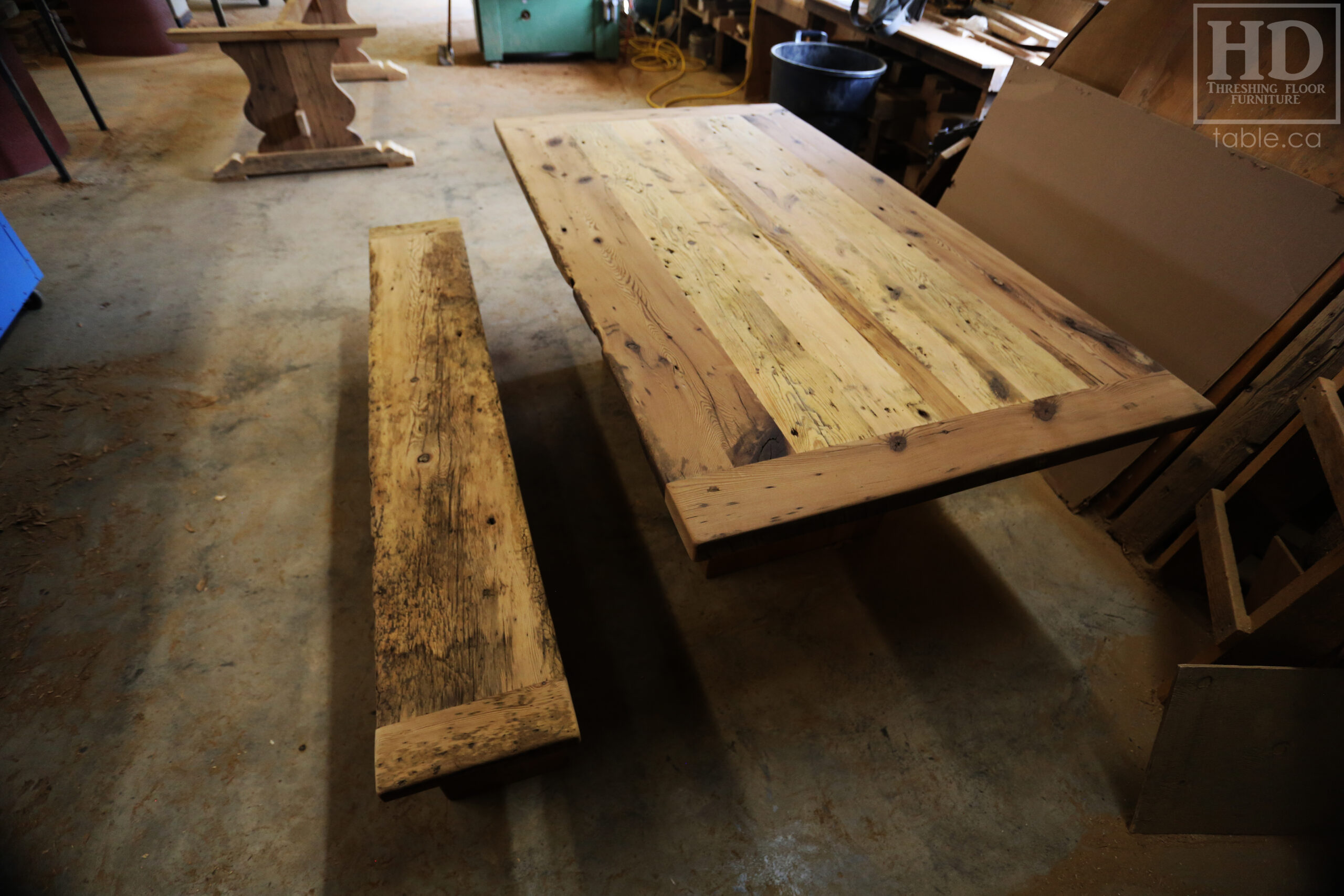 ![74" Reclaimed Ontario Barnwood Table - 48" wide - Plank Base Option - Old Growth Hemlock Threshing Floor Construction - Original edges & distressing maintained - Premium epoxy + matte polyurethane finish - 74" [matching] Plank Base Bench - 4 Modified Plank Back Chairs - 3 Saddle Stools - www.table.ca](https://www.hdthreshing.dreamhosters.com/blog/blog/wp-content/uploads/2023/01/rustic-reclaimed-wood-table-windsor-ontario-hd-threshing-17-scaled.jpg)