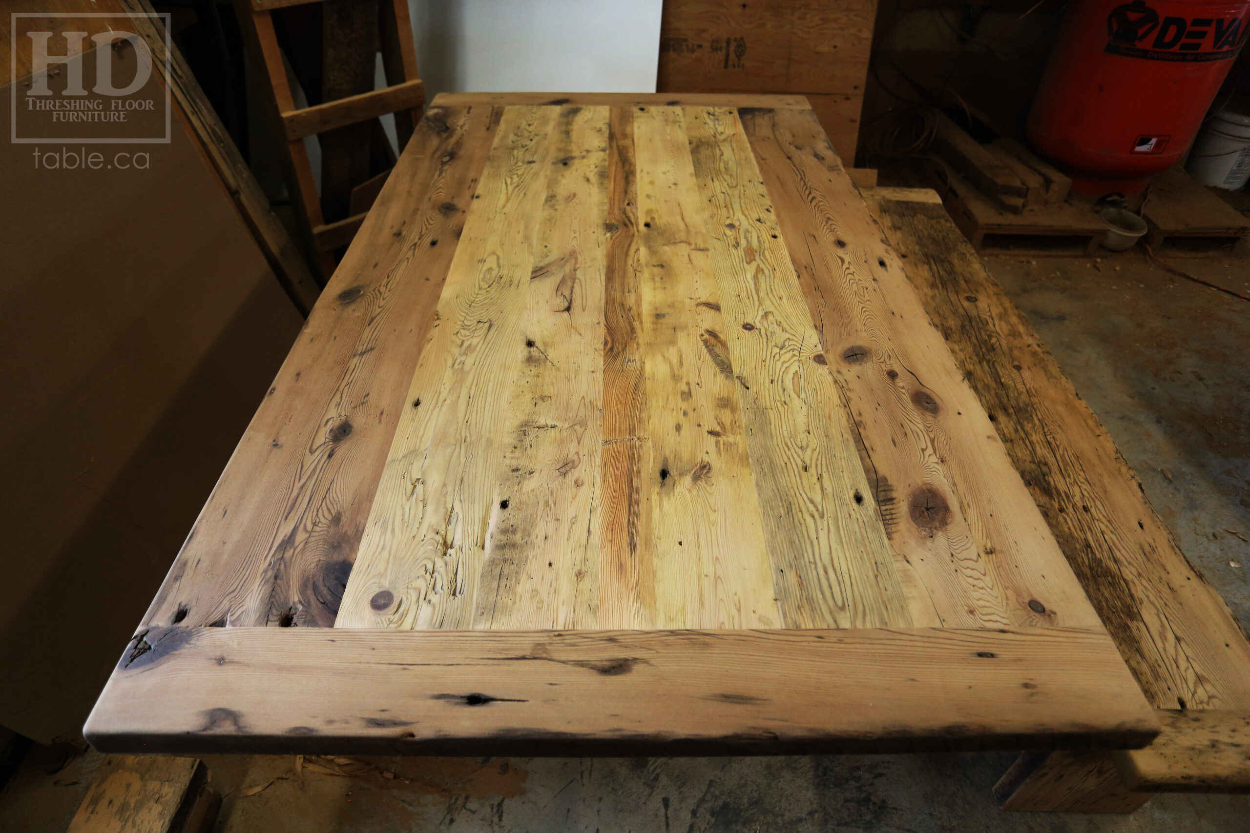![74" Reclaimed Ontario Barnwood Table - 48" wide - Plank Base Option - Old Growth Hemlock Threshing Floor Construction - Original edges & distressing maintained - Premium epoxy + matte polyurethane finish - 74" [matching] Plank Base Bench - 4 Modified Plank Back Chairs - 3 Saddle Stools - www.table.ca](https://www.hdthreshing.dreamhosters.com/blog/blog/wp-content/uploads/2023/01/rustic-reclaimed-wood-table-windsor-ontario-hd-threshing-12-scaled.jpg)