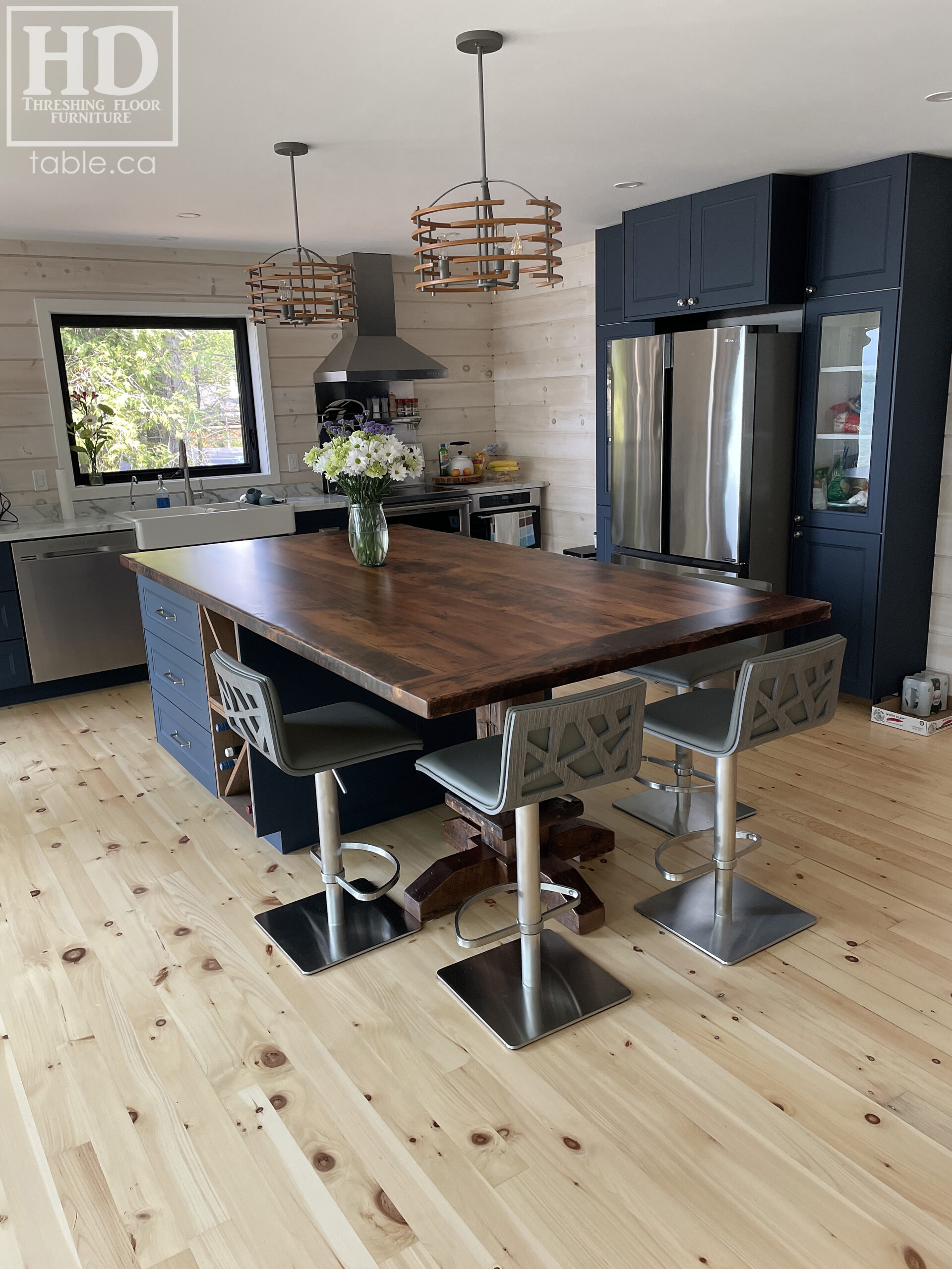 One way you can extend the size of an island top is to extend beyond the end of the cabinetry and add a centre post. We did for this Wiarton customer; expanding the usefulness of their island. See pics below!