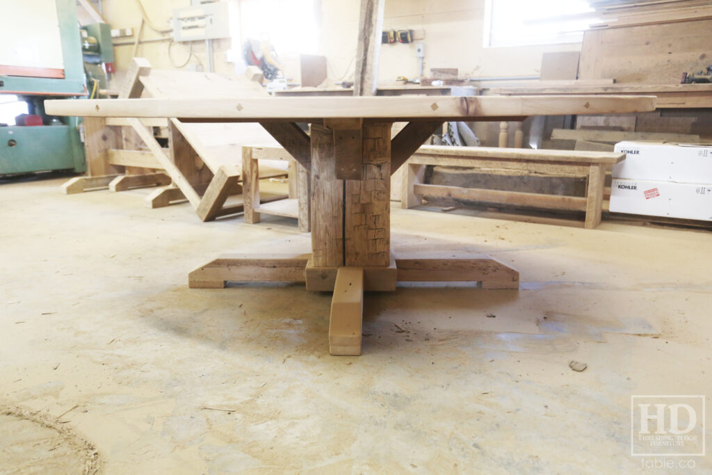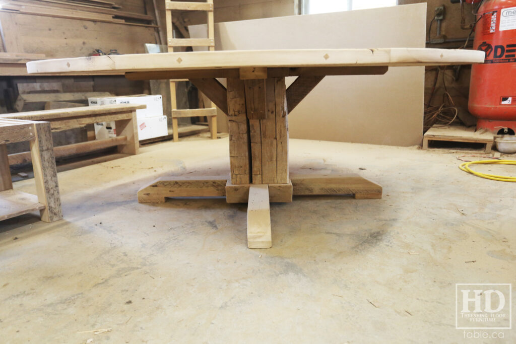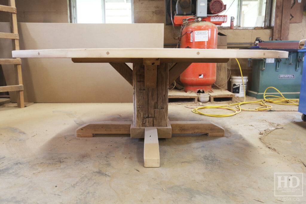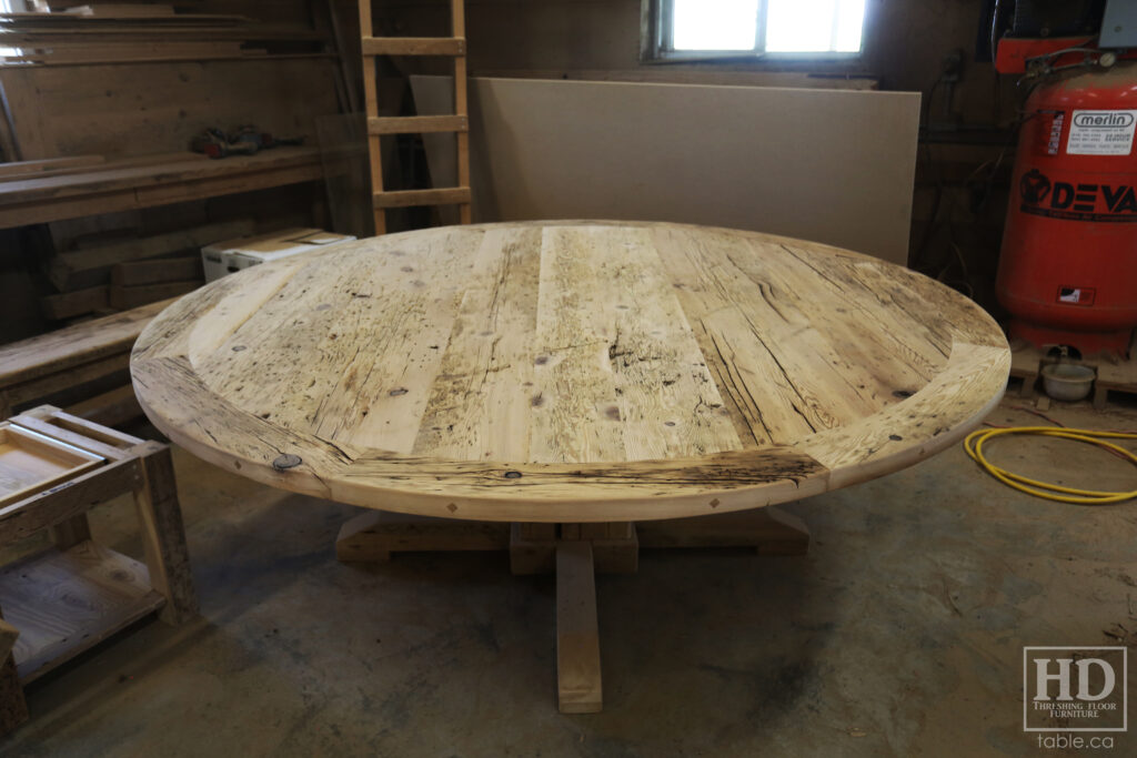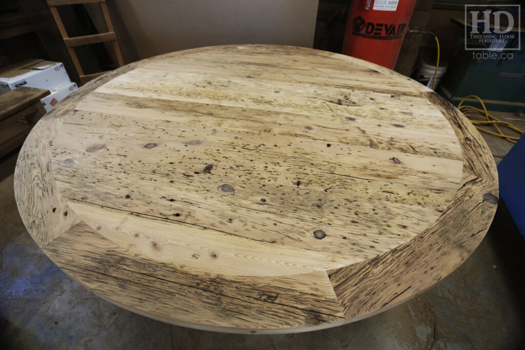 We custom build reclaimed wood round table from old Ontario barnwood to any size. Check out this large 84″ round reclaimed wood table we recently made for a Dundas office: