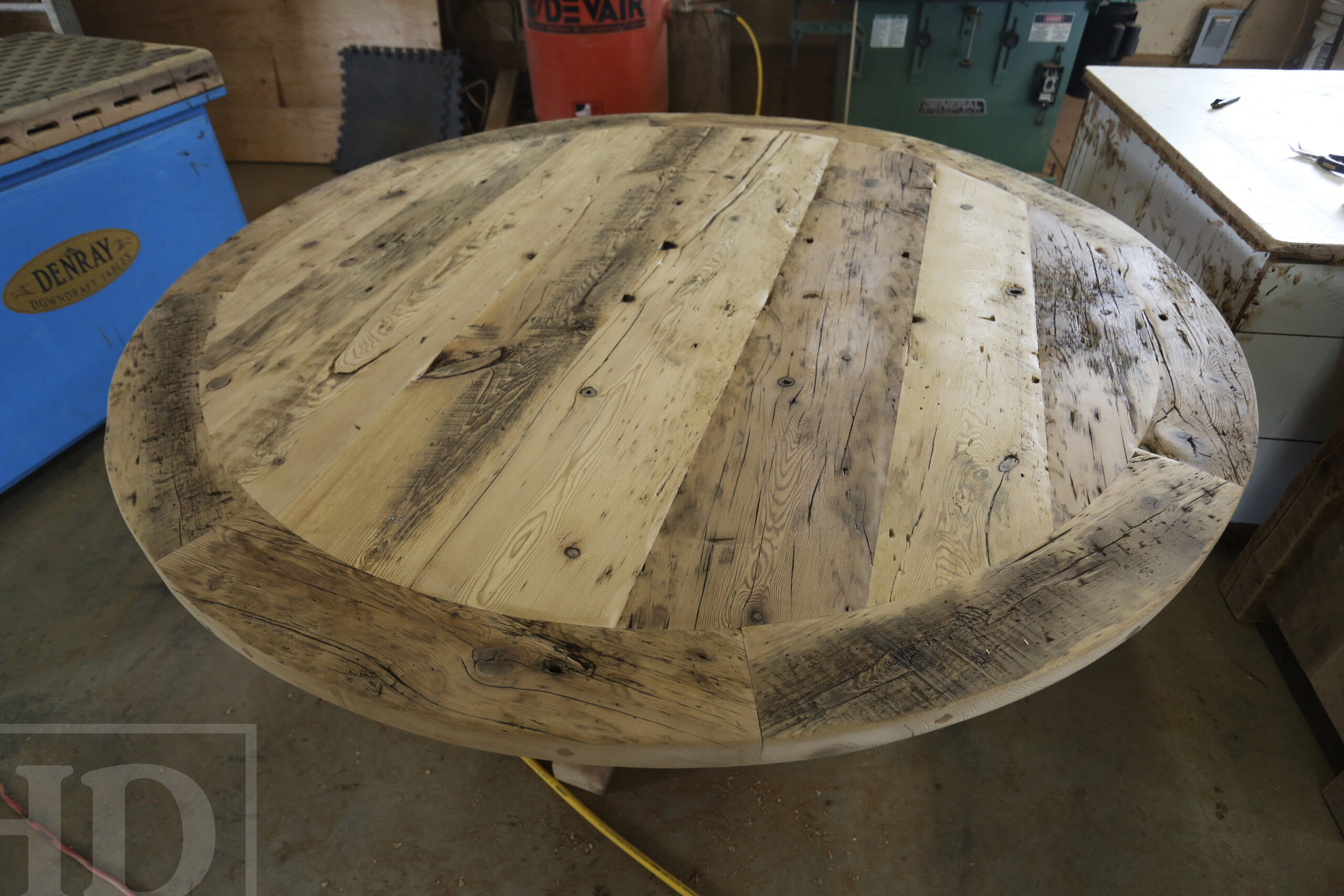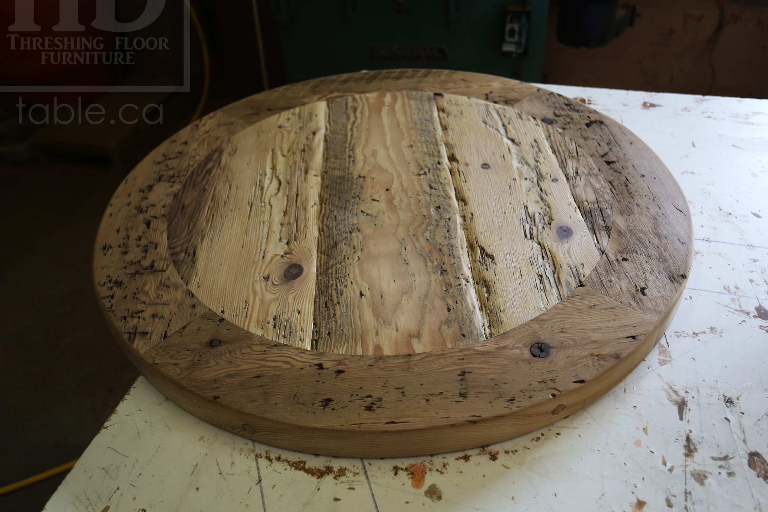Our reclaimed wood tables will stand out in any space. Here’s a recent Meaford reclaimed wood round table project for a Meaford client: