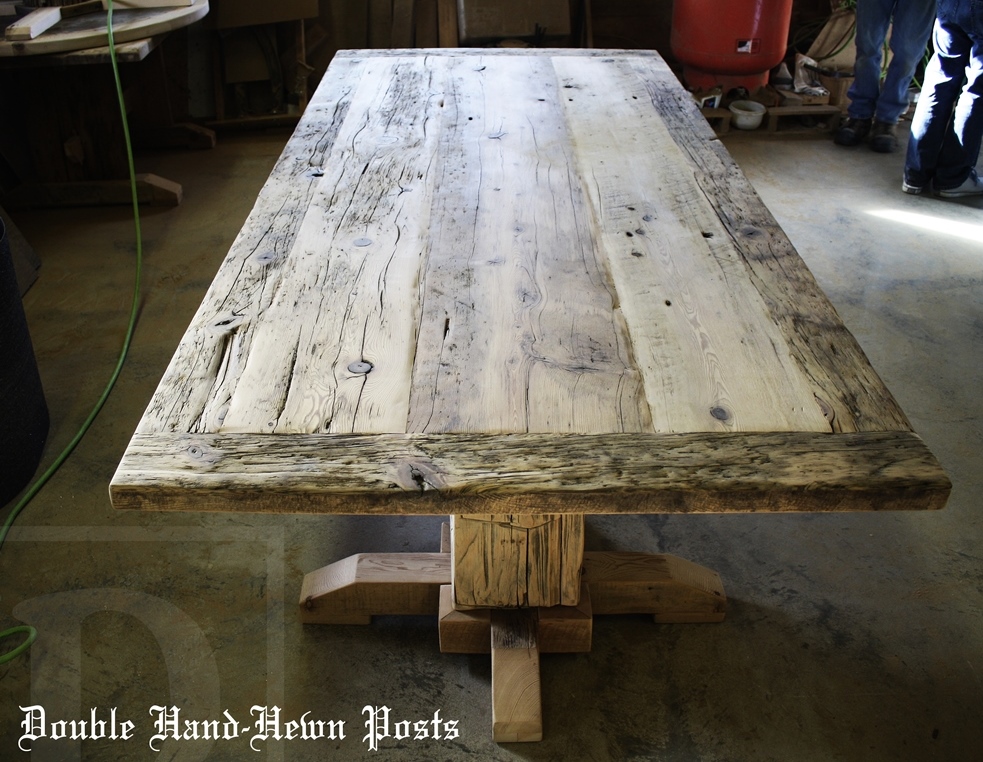 Unfinished Reclaimed Wood Table with Hand-Hewn Beam Pedestals Base – Posted by Gerald Reinink, Design & Sales
