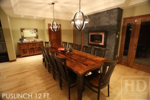 Details: 10 ft Reclaimed Wood Table – Harvest Style Base – Reclaimed Hemlock 2″ thick top – Premium epoxy/matte polyurethane finish – Black stain skirting + legs – Tapered with a Notch Legs HD Threshing Floor Furniture Gerald Reinink