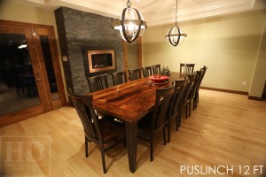Details: 10 ft Reclaimed Wood Table – Harvest Style Base – Reclaimed Hemlock 2″ thick top – Premium epoxy/matte polyurethane finish – Black stain skirting + legs – Tapered with a Notch Legs HD Threshing Floor Furniture Gerald Reinink