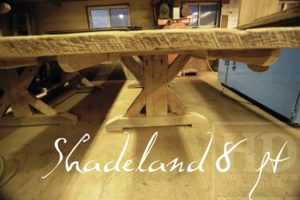 Description: 8 ft Reclaimed Wood Table – 42″ wide – Sawbuck Style Base – Reclaimed Hemlock Threshing Floor Construction – Premium epoxy/matte polyurethane finish – One 18″ Leaf – Original barnwood edges maintainedÂÂ