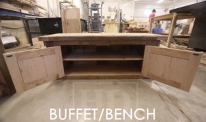 Details: 4 ft Reclaimed Wood Storage Bench – 17″ deep – 19″ height – 2 Doors – Adjustable 1″ Internal Shelf – 4″ x 4″ Reclaimed Windbrace Beam Posts on Corners – Premium epoxy/polyurethane finish – Lee Valley Hardware – Original distressed maintained – Old barn floor edges kept
