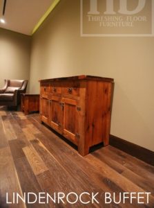 Details: 5 ft Buffet – 20″ deep – 36″ height – 3 drawers / 3 doors – Lee Valley Hardware – Reclaimed Hemlock Construction – Premium epoxy/polyurethane finish – Original barnwood edges maintained