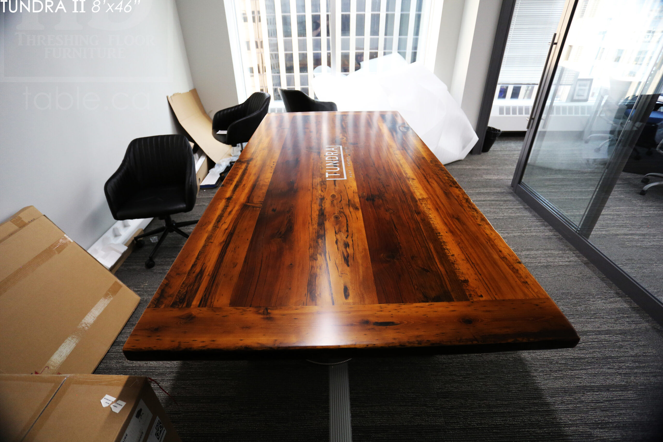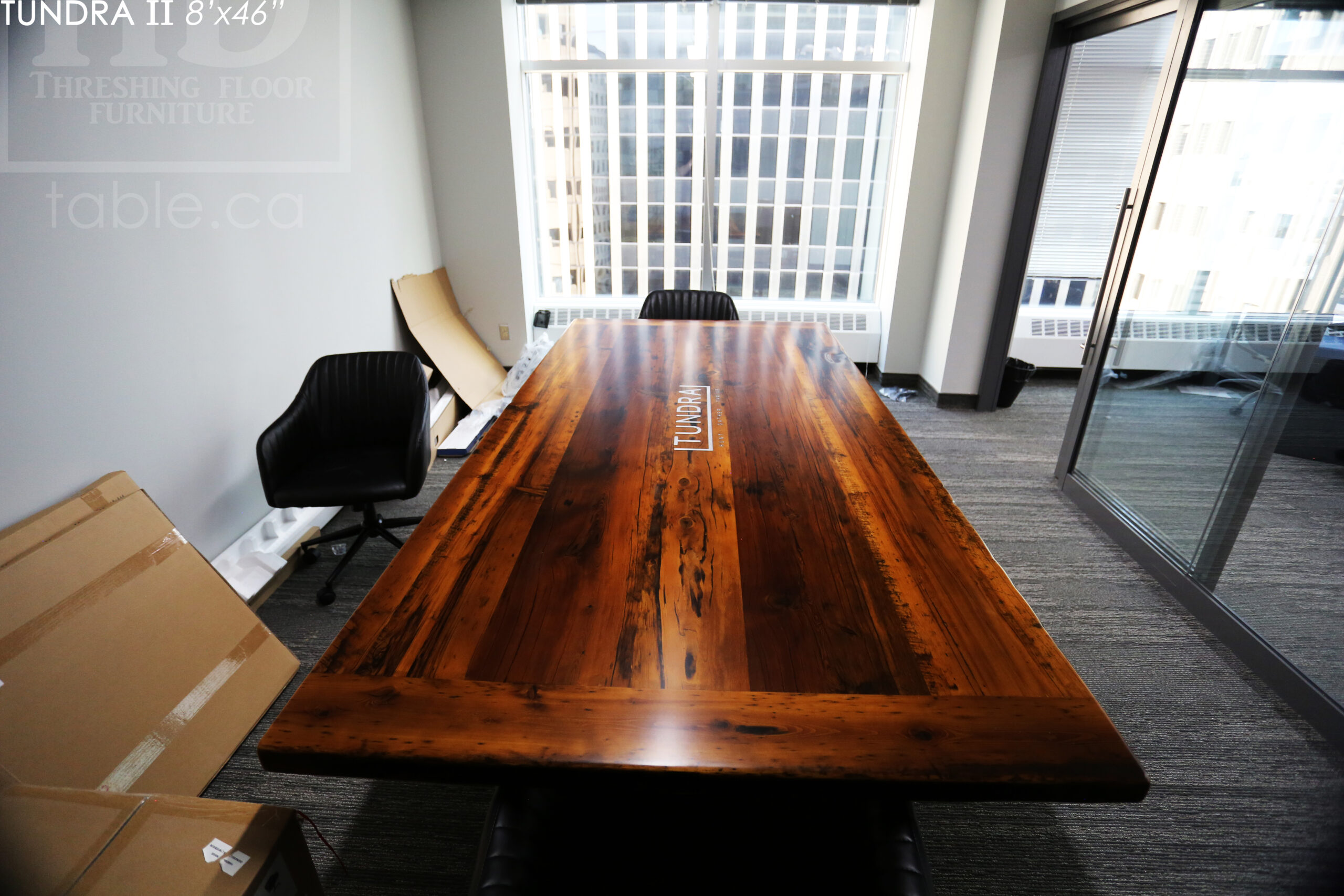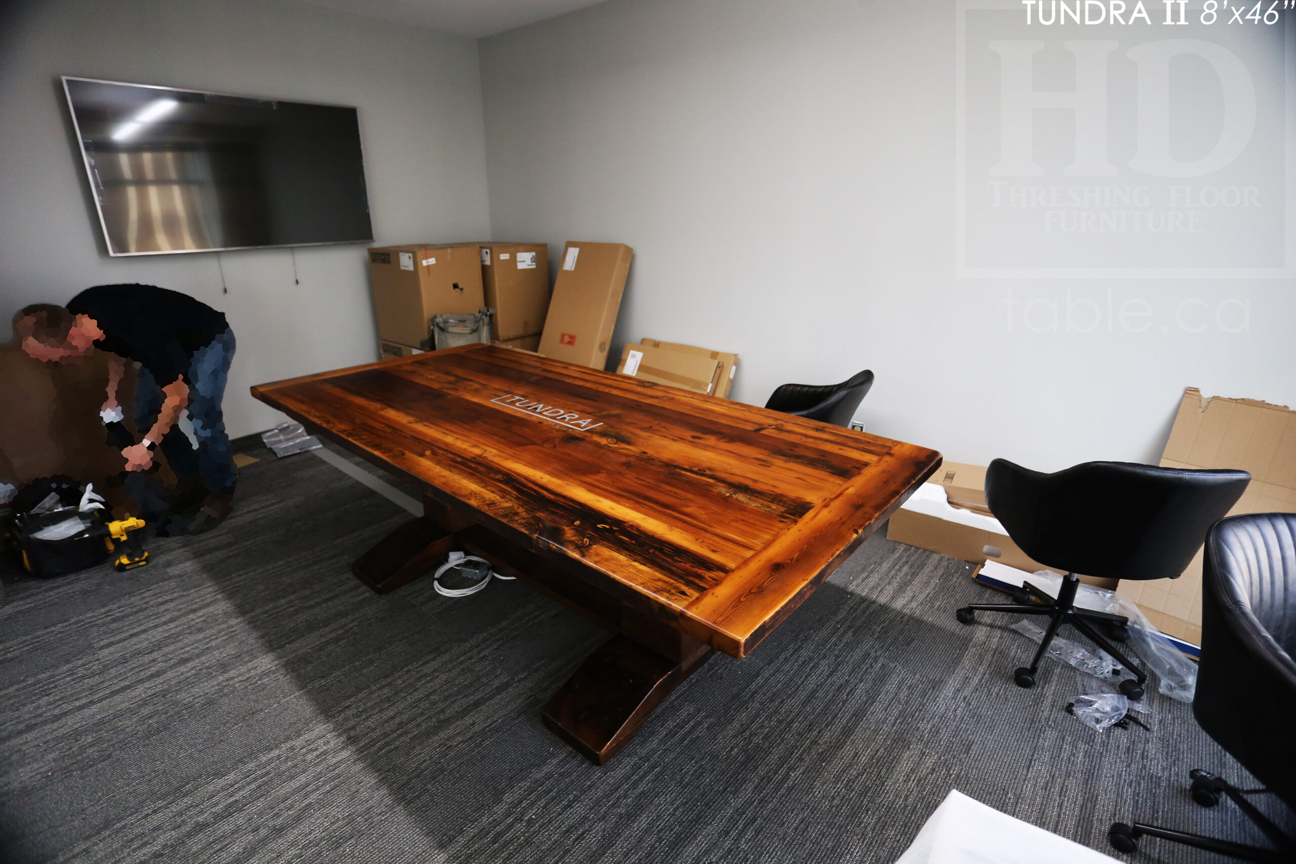 Ontario Made Reclaimed Wood Boardroom Table with Epoxy + Polyurethane Finish