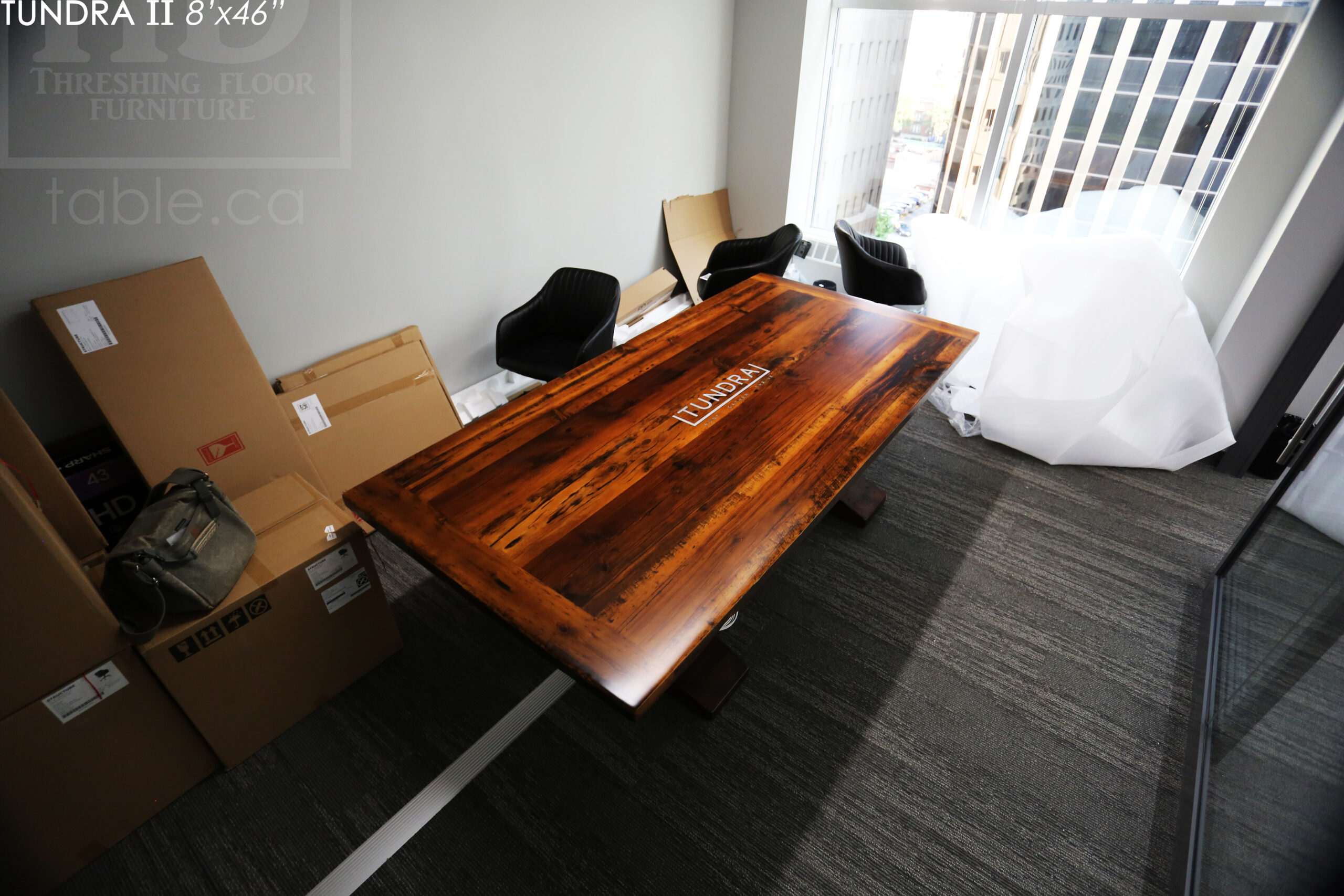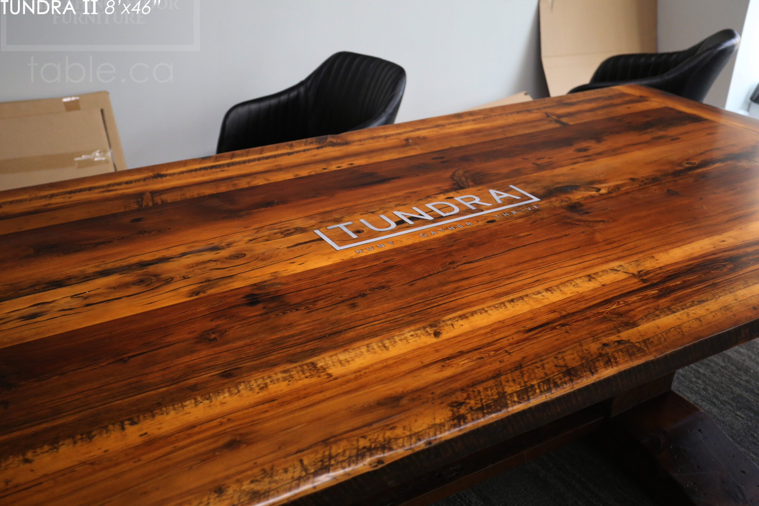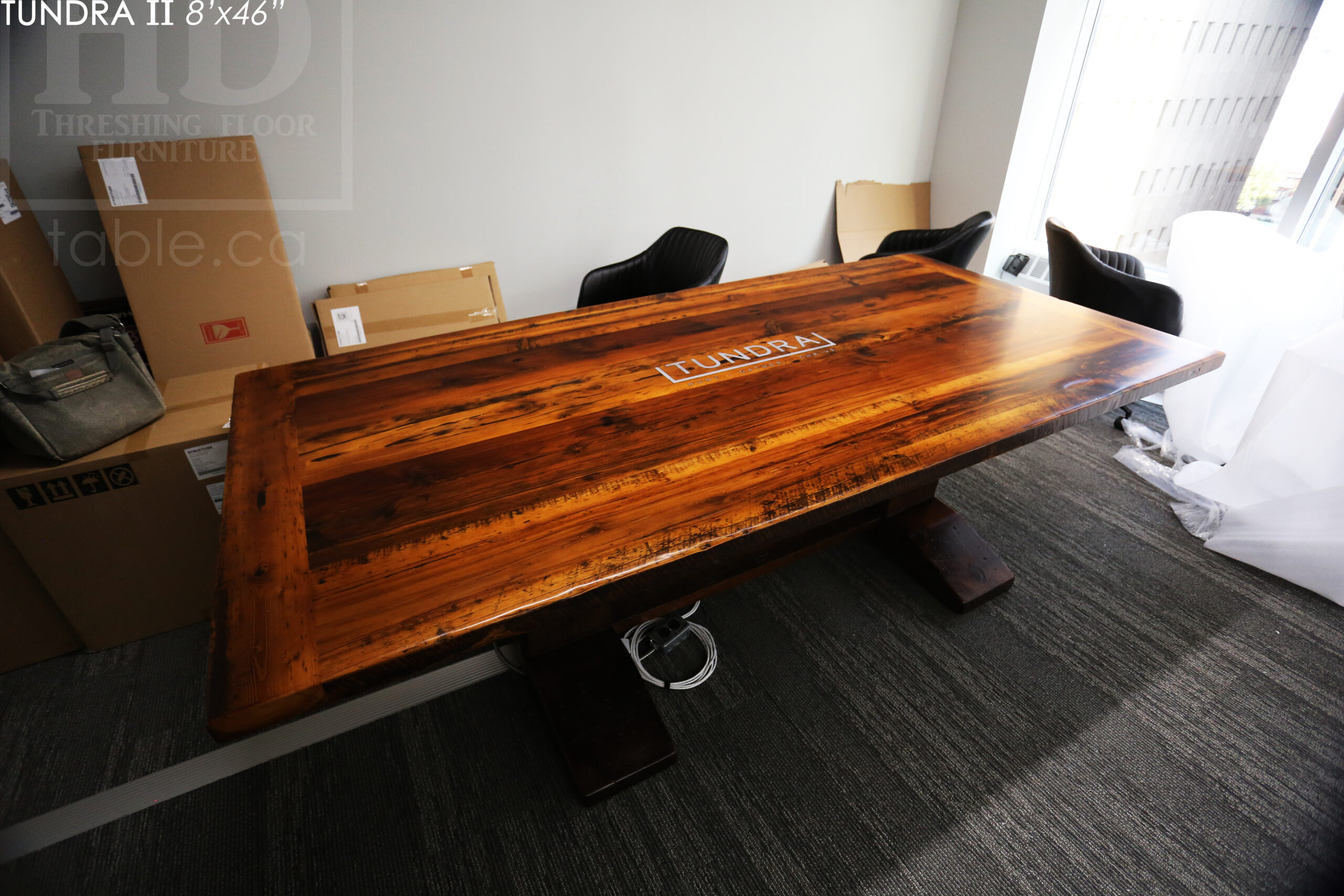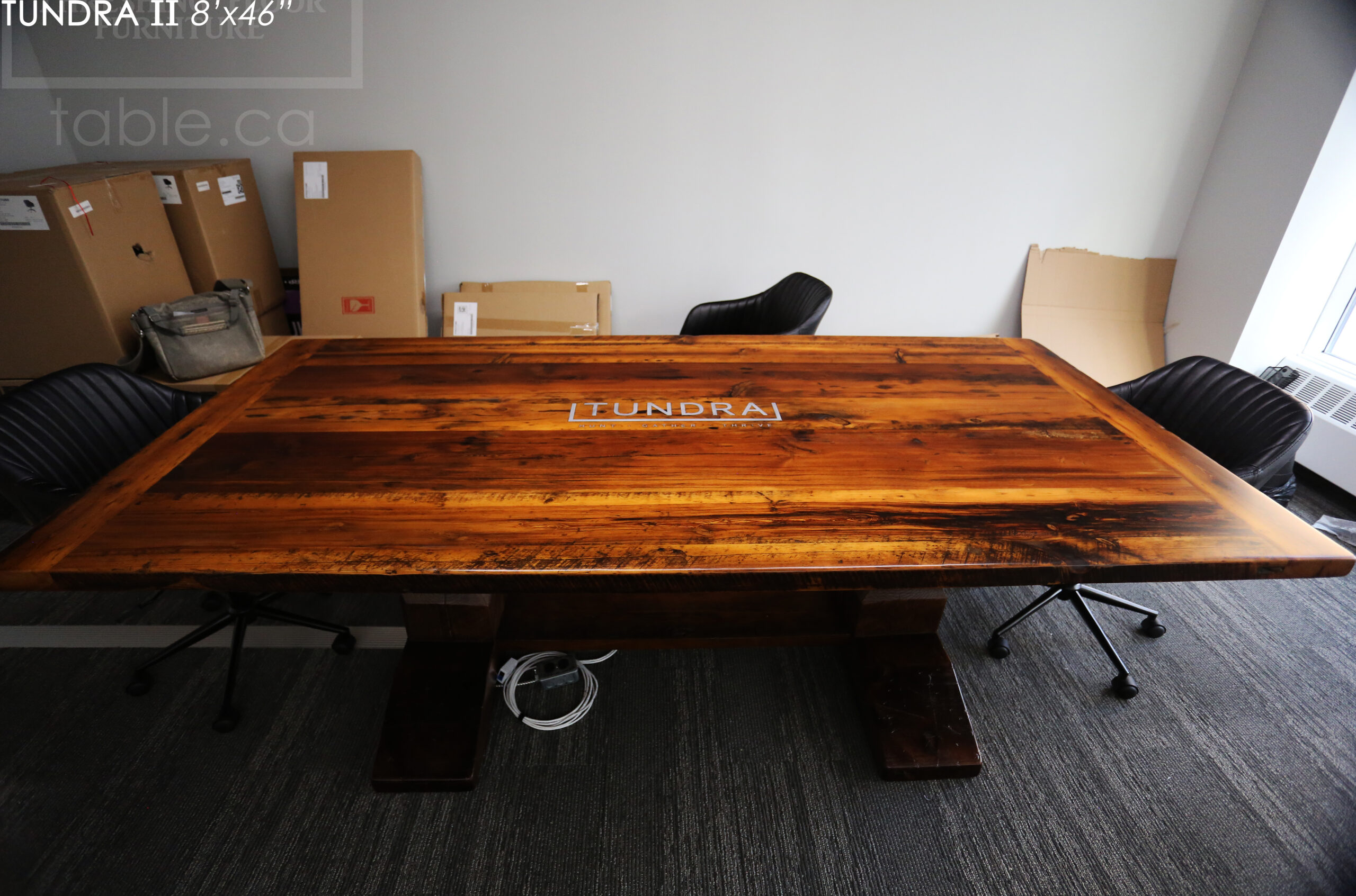 Ontario Made Reclaimed Wood Boardroom Table with Epoxy + Polyurethane Finish