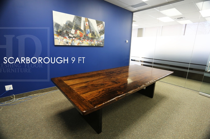 9 ft Reclaimed Wood Boardroom Table with Black Base and Epoxy Finish in Scarborough, Ontario
