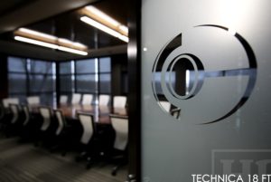 Specifications: 18 foot Boardroom Table – Made in three 6′ x 6′ parts [for ease of delivery into building] – Reclaimed Hand-Hewn Beam Pedestals – Reclaimed Hemlock Threshing Floor 2″ Top – Premium epoxy / satin polyurethane topcoat – On site final dry doweling – Custom steel logo embedded into table centre – Original barn floor board live edges maintained