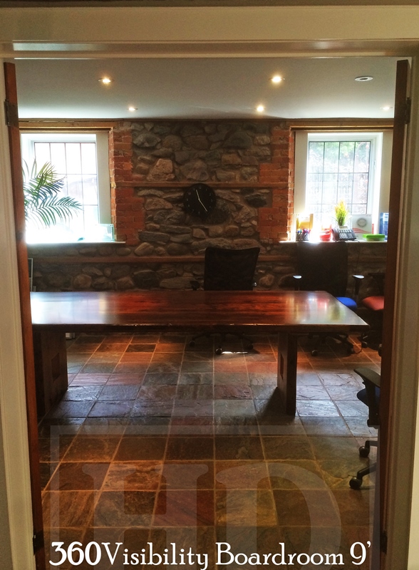 While many of the boardroom tables we do go into modern office spaces, not all are. This table we made for a company in Vaughn, Ontario. The space was in an old transformed church, with stone walls and a rustic environment. In these spaces, as well, our tables stand out as a centerpiece.