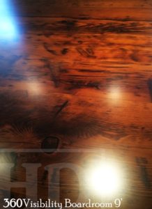 Specifications: 9 ft Boardroom Table -48″ wide – Premium epoxy/polyurethane finish – 3″ joist plank style modern base – Cavity in posts – Reclaimed Hemlock Threshing Floor Construction – Original live barnwood edges maintainedÂÂ