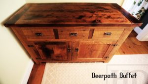 Specifications: 5 foot Buffet – 18″ deep – 36″ height – 3 drawers – 2 doors – Lee Valley Antique Copper Hardware – Reclaimed 1″ Hemlock – 2″ Threshing Floor Top – Original barn board edges – Posted by Gerald Reinink, Design & Sales