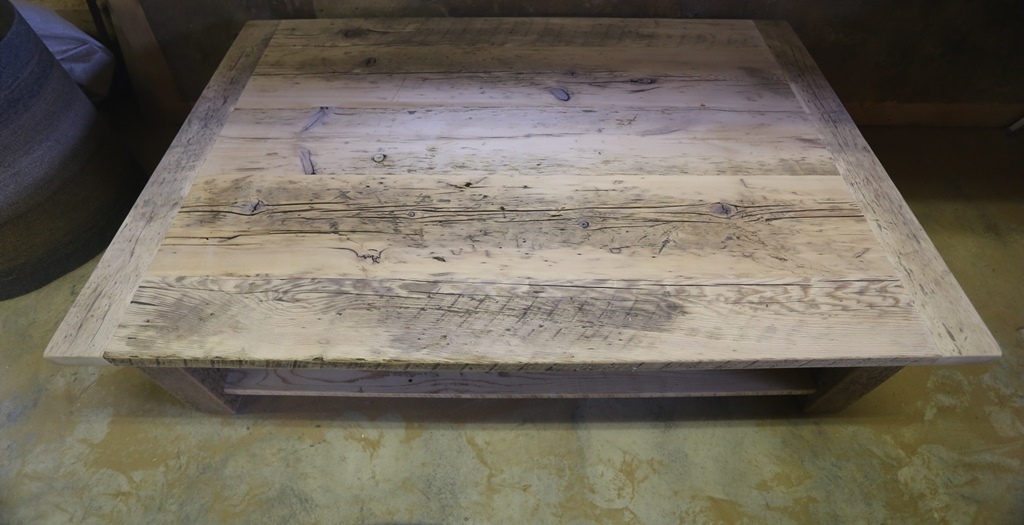 Our custom reclaimed wood coffee tables will add practicality and a centerpiece in your living room or basement. We keep the old character meaning the pioneer history of Ontario is visible; see pics below!