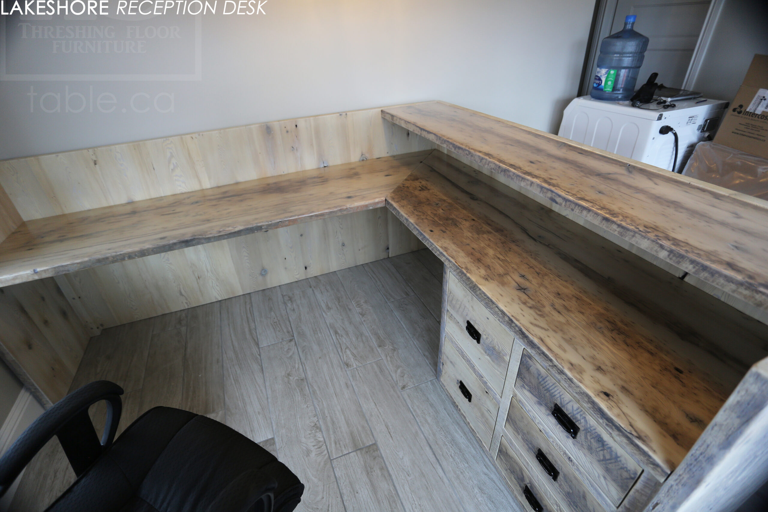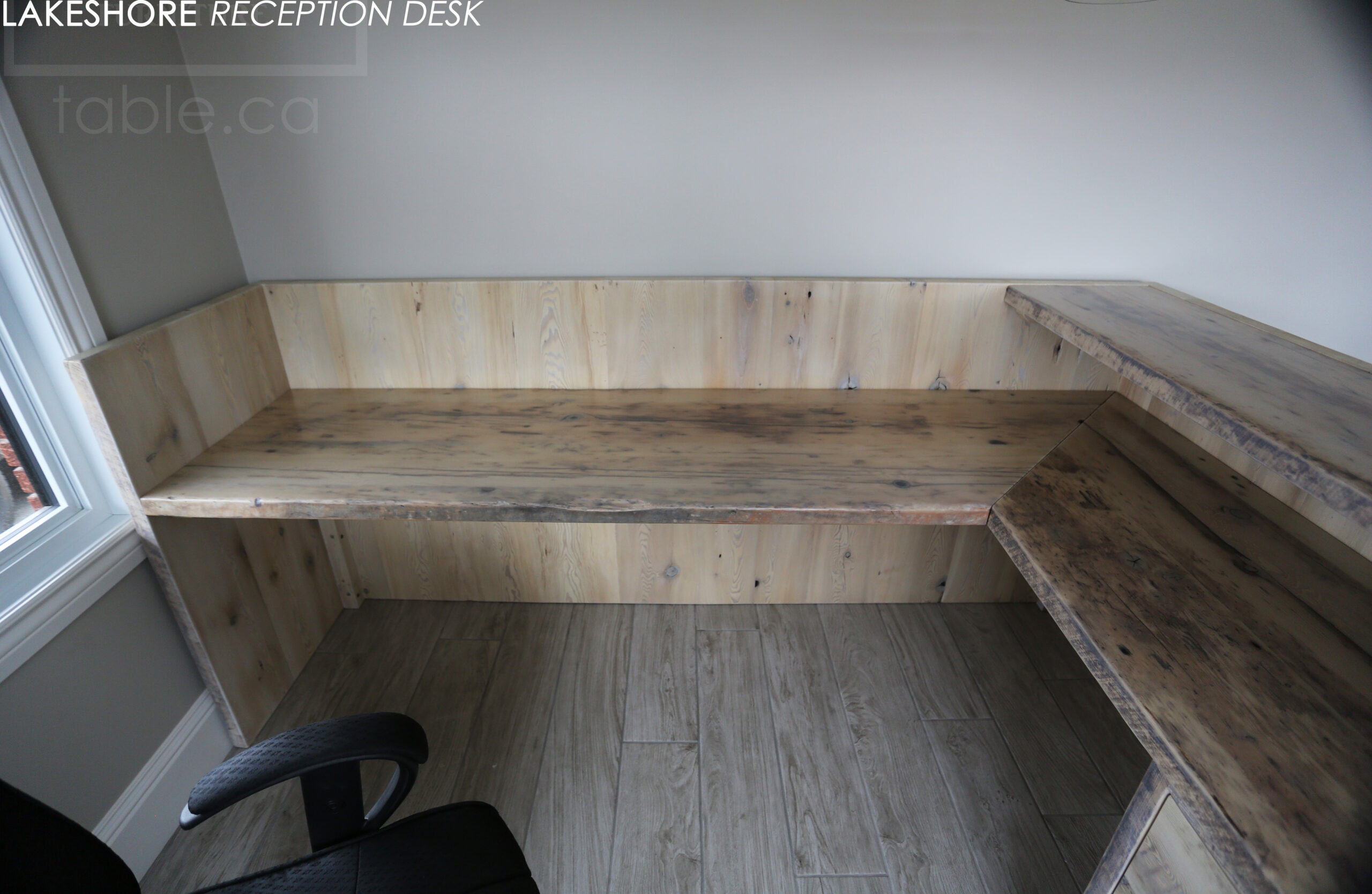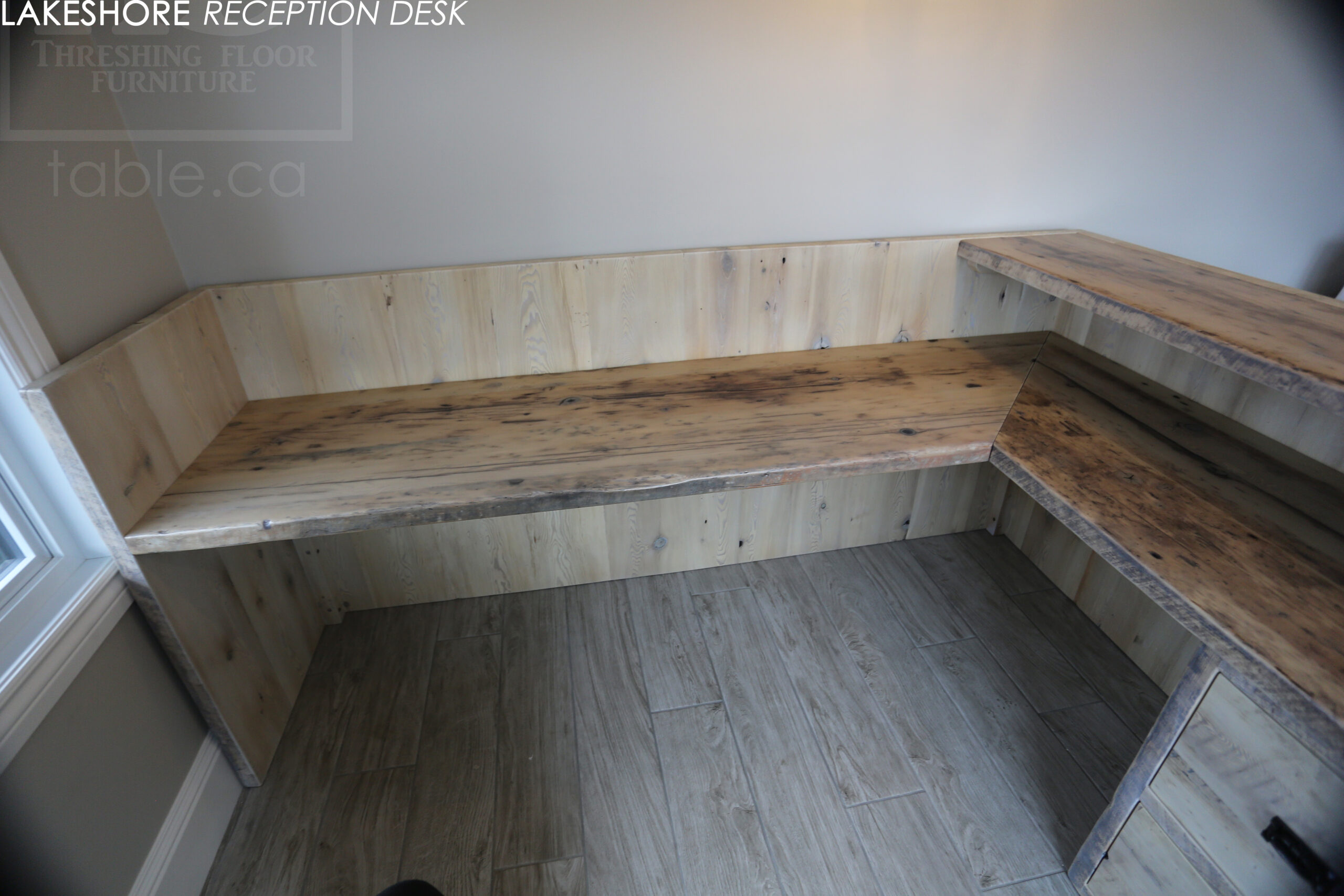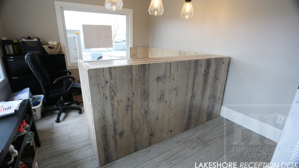 Reclaimed Wood Desk with Bleach Greytone Treatment Option for Ottawa Company