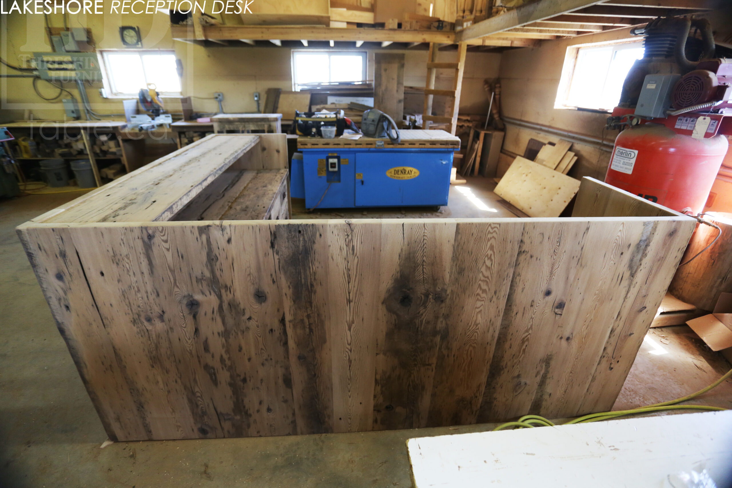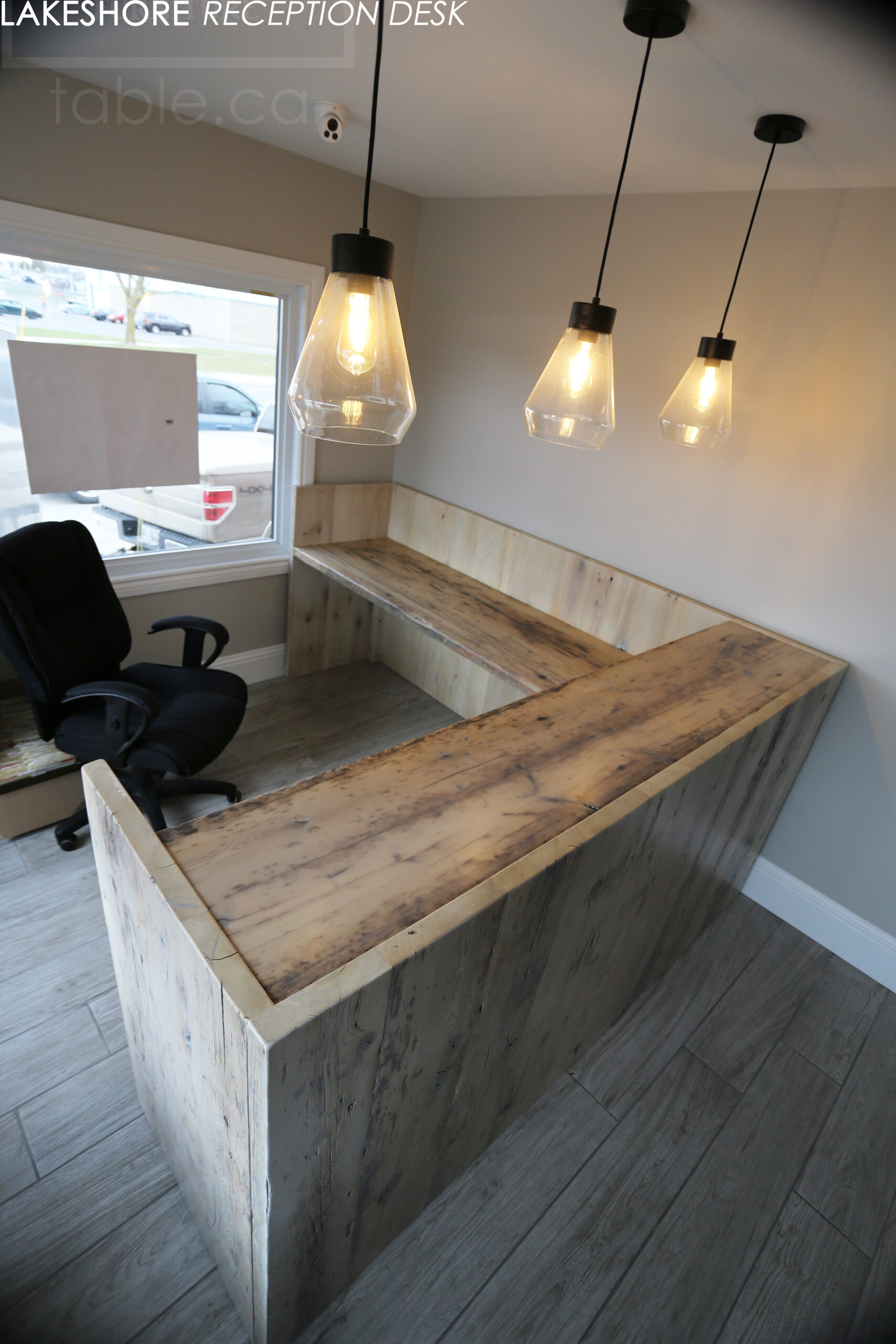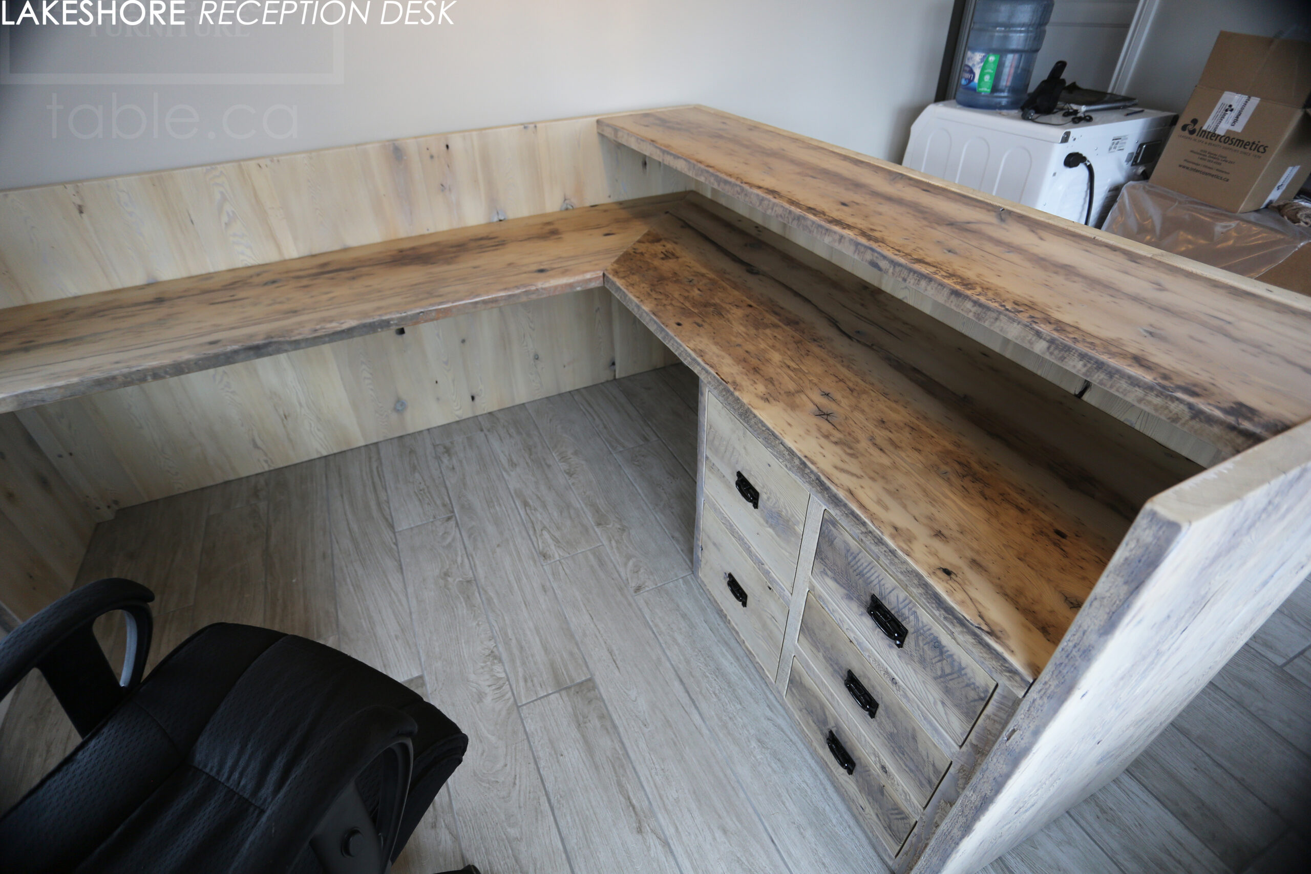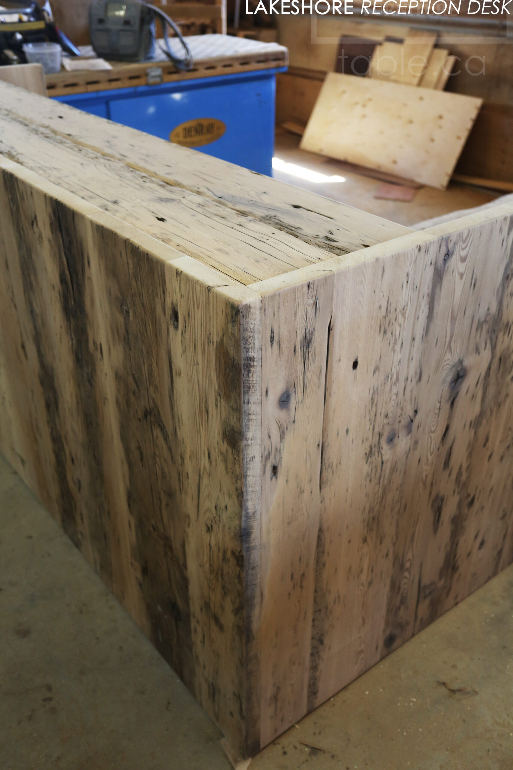 Reclaimed Wood Desk with Bleach Greytone Treatment Option for Ottawa Company