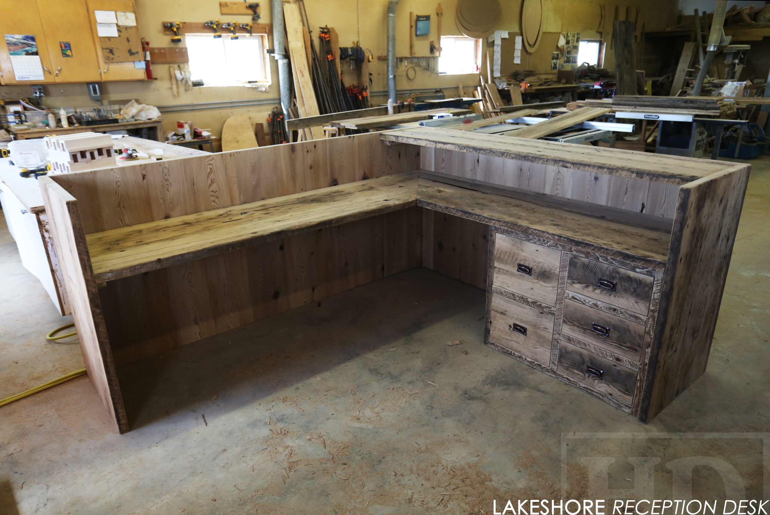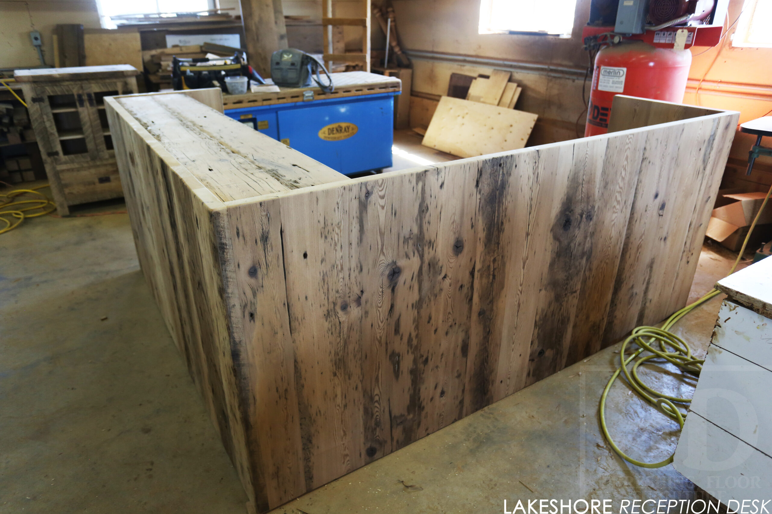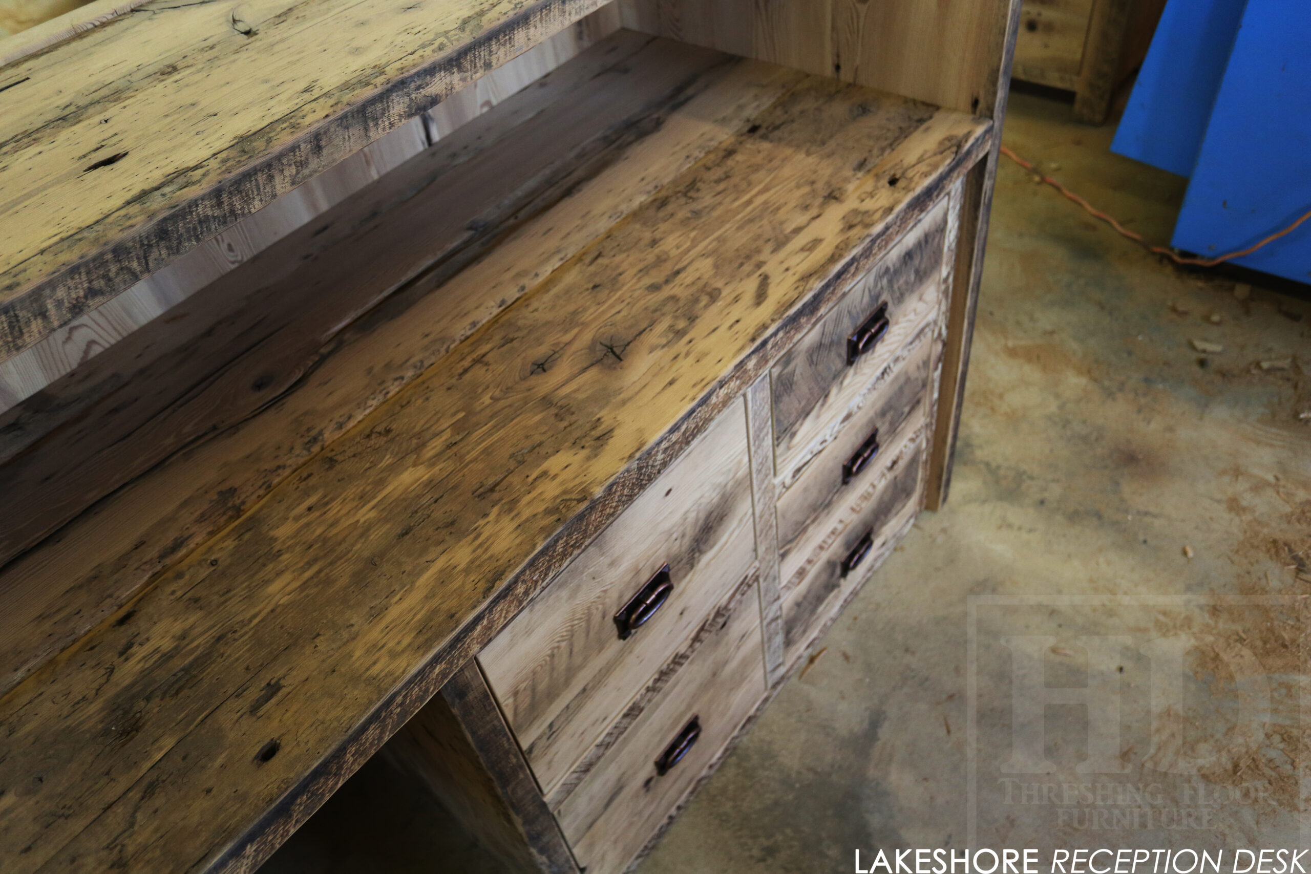 Reclaimed Wood Desk with Bleach Greytone Treatment Option for Ottawa Company