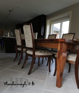 8 ft Reclaimed Dining Table – Harvest Style Base – 42″ wide – Premium epoxy + matte polyurethane finish – Reclaimed Pine Threshing Floor – Cabriole Legs – two 18″ leaves – Gerald Reinink